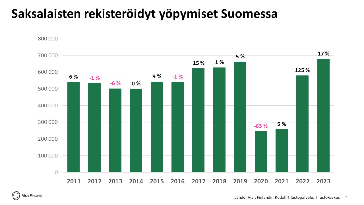 Saksalaiset matkailijat ovat suurin ryhmä yöpymisillä mitattuna. Visit Finland