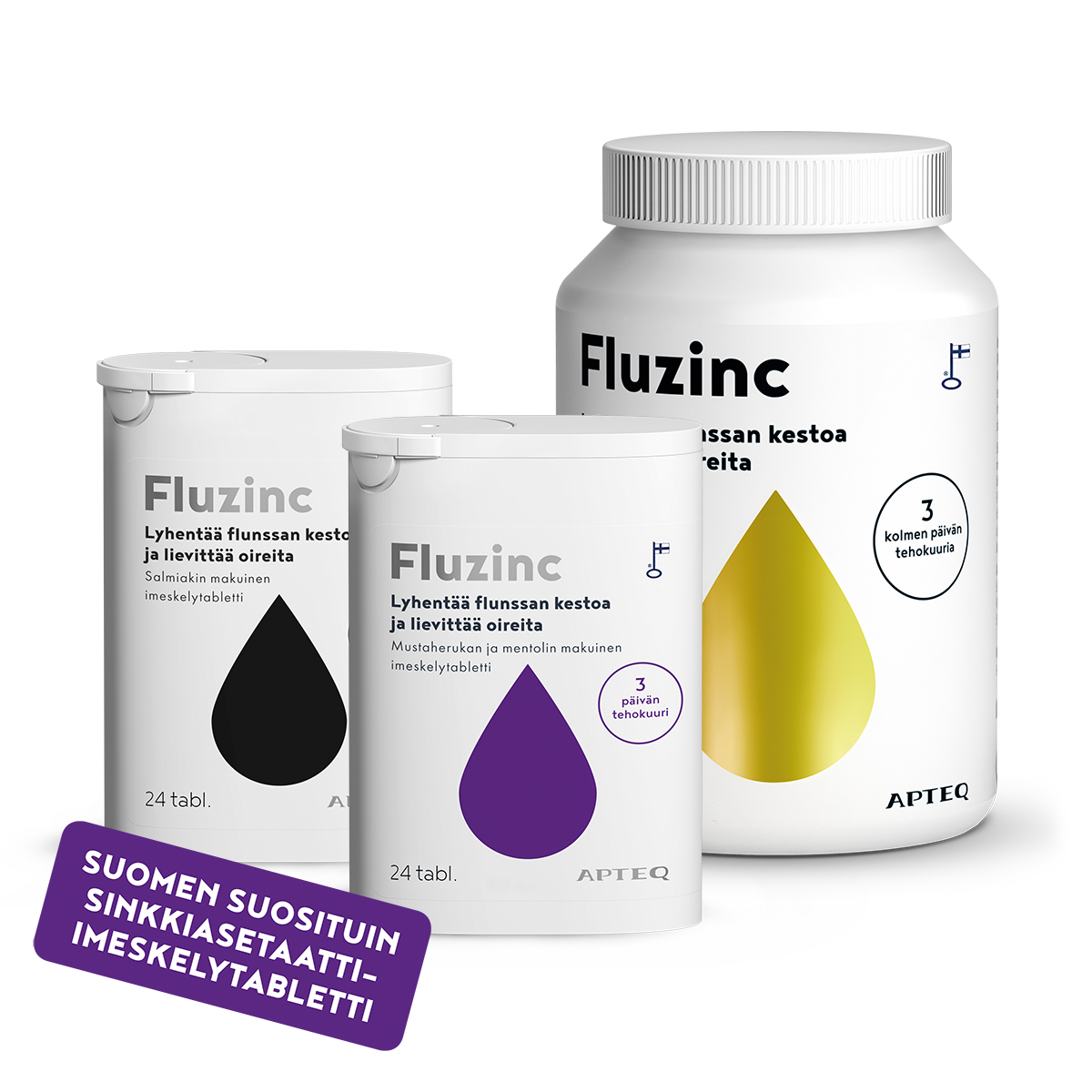 Apteq Fluzinc on maailman ensimmäinen tiukan EU-lain läpäissyt sinkkiasetaattikuuri flunssan hoitoon