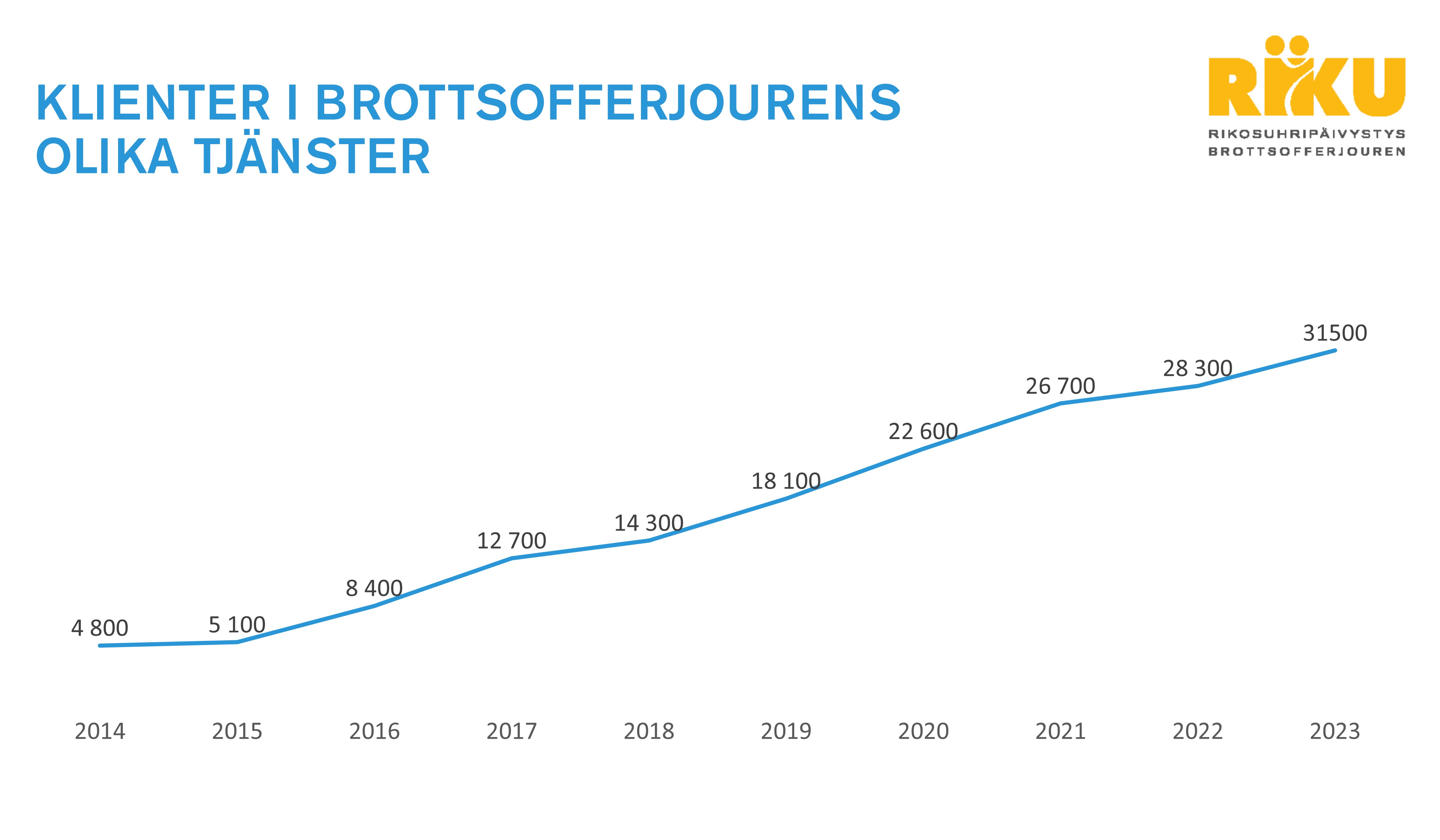 - Den kraftiga ökningen av klientantalet visar att det finns ett tydligt behov i samhället för kvalitativa stödtjänster för brottsoffer. RIKUs kännedom är god och våra tjänster har etablerat sin ställning över hela Finland, säger Brottsofferjourens verksamhetsledare Leena-Kaisa Åberg.