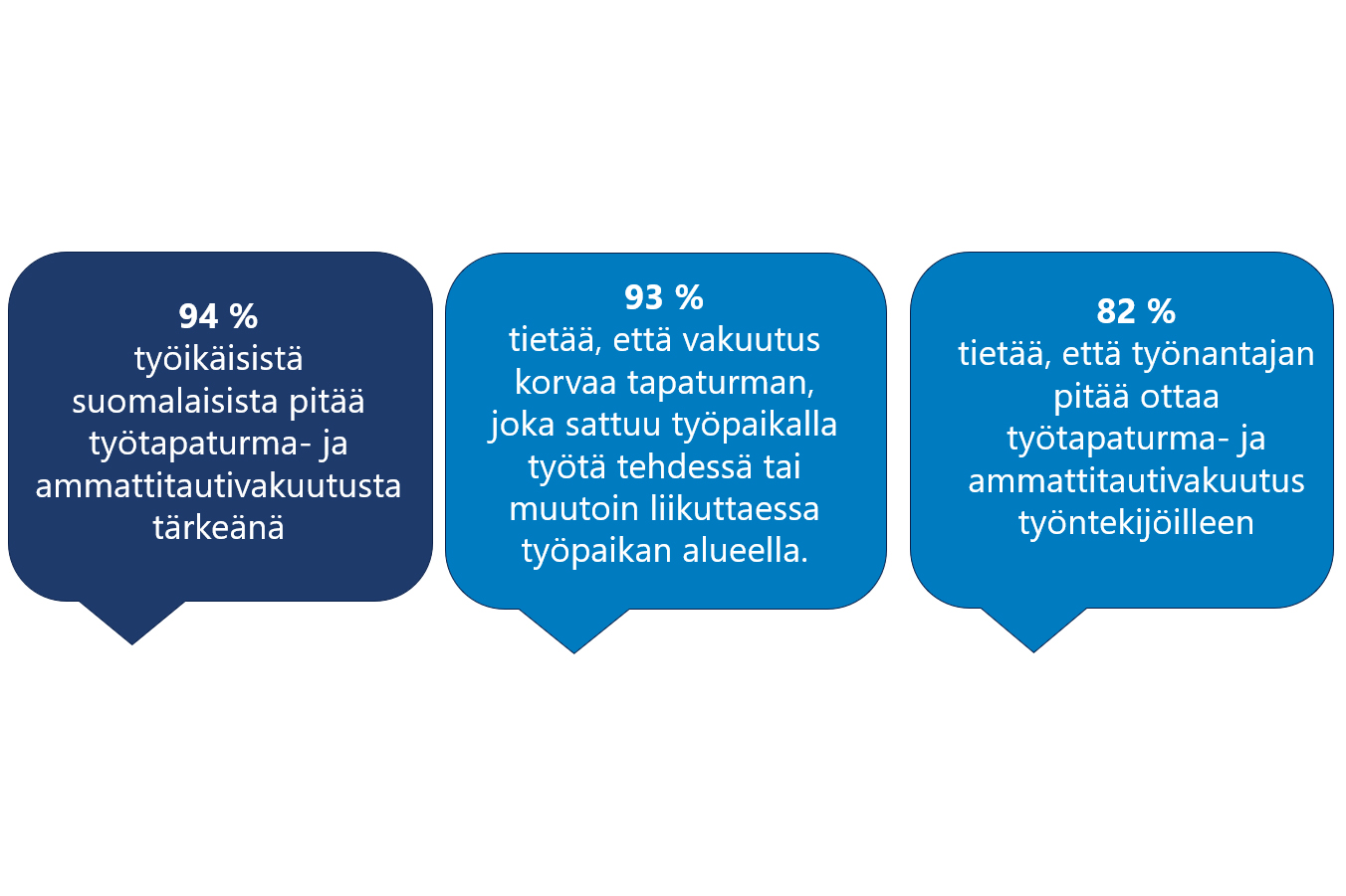 Suomalaiset pitävät työtapaturma- ja ammattitautivakuutuksen tarjoamaa turvaa tärkeänä. Työikäiset suomalaiset tietävät, että työnantajan tulee lain mukaan ottaa työtapaturma- ja ammattitautivakuutus työntekijöiden turvaksi. Vakuutusturvan sisältö tunnetaan paikoin vielä kuitenkin verraten heikosti.