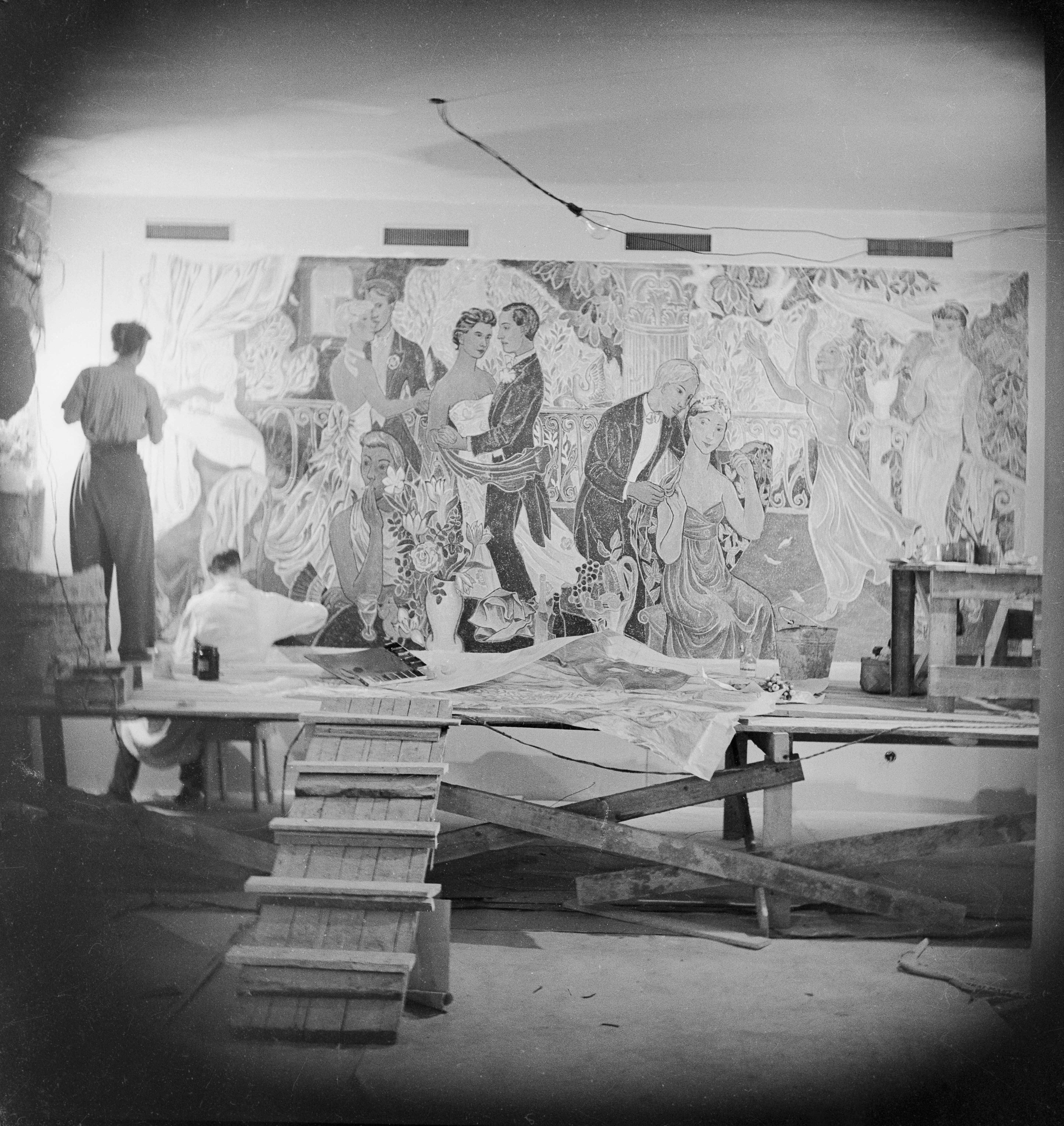 Julkiset tilaustyöt liittyivät toisen maailmansodan jälkeiseen jälleenrakennuksen aikaan. Tove Jansson toteutti huomattavan osan julkisista maalauksistaan kotikaupunkinsa Helsingin rakennuksiin, esimerkiksi Tullinpuomin taloon, Apollonkadun tyttökouluun, Strömbergin tehtaaseen, Domus Academican opiskelija-asuntolaan ja Auroran sairaalan lastenosastolle sekä Helsingin kaupungintalon vuonna 1947 avattuun edustusravintolaan.