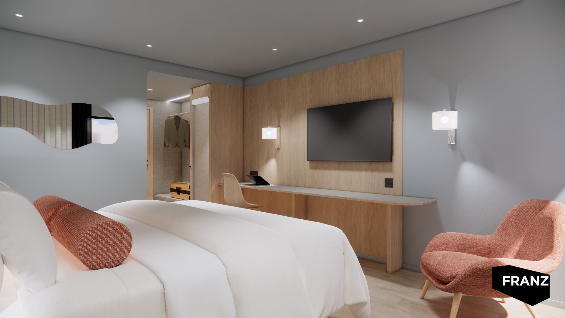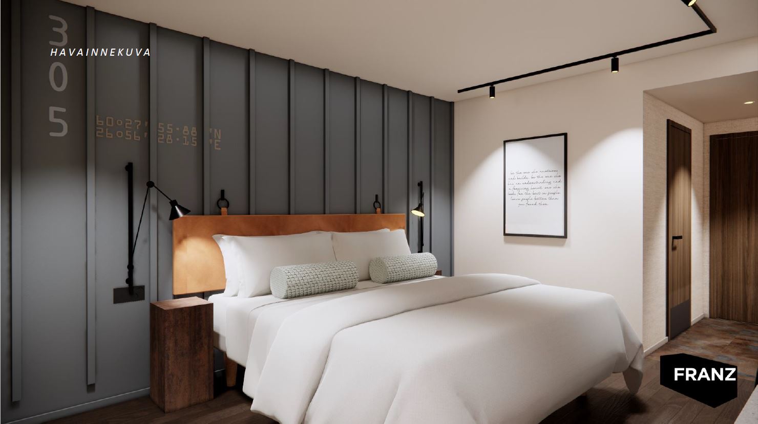 Havainnekuva Satama -huoneesta.