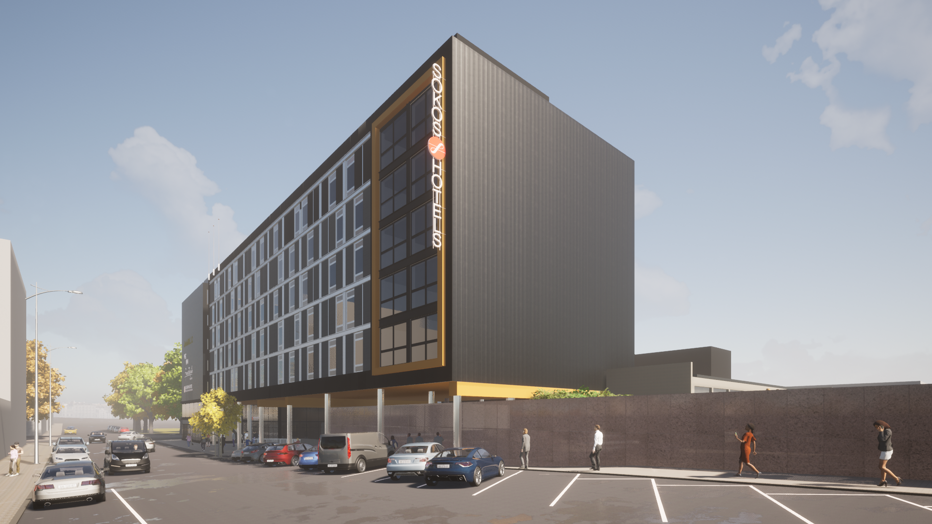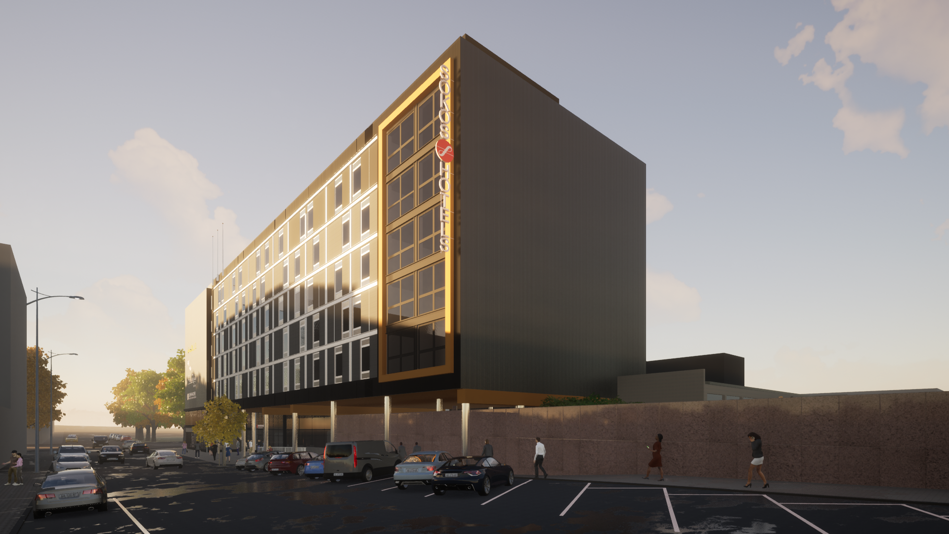 Havainnekuva uudesta hotellisiivestä.