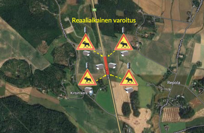"Valtatien 8 riista-aidat ohjaavat hirvieläinten kulun tähän aukkokohtaan, jonka kautta tien on ylittänyt jopa 30 hirvieläintä päivässä – riski kolariin ilman varoitusjärjestelmää on merkittävä", kommentoi hirvitalousaluesuunnittelija Antti Rinne Suomen riistakeskuksesta.