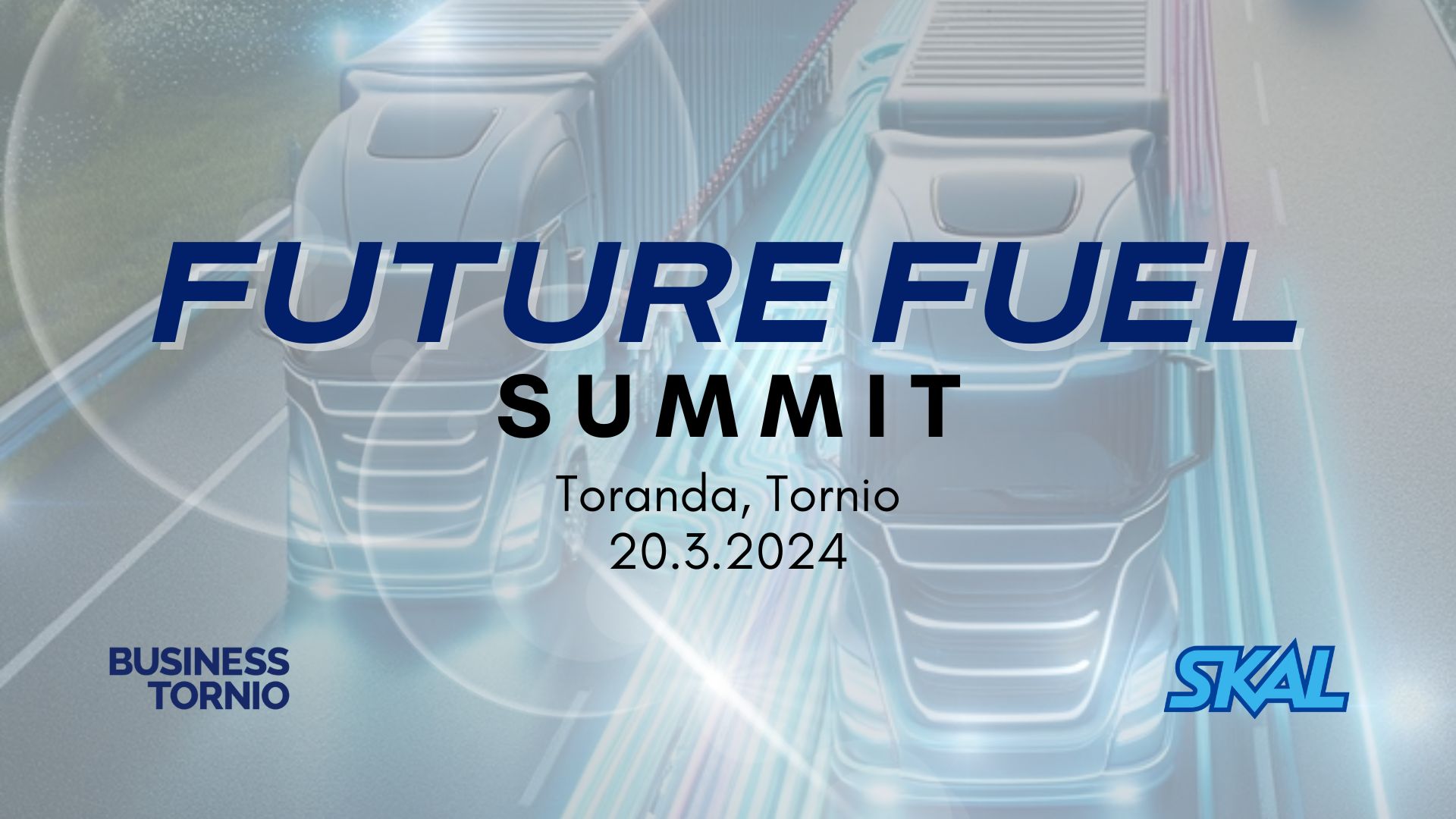 Business Tornio järjestää liikennettä, logistiikkaa ja tulevaisuuden käyttövoimaa käsittelevän Future Fuel Summit -tilaisuuden Torniossa 20.3.2024. Tilaisuus järjestetään yhteistyössä SKAL Pohjois-Suomen kanssa osana SKAL Liikenteessä -päivää ja tilaisuuden avaa SKAL ry:n toimitusjohtaja Anssi Kujala.