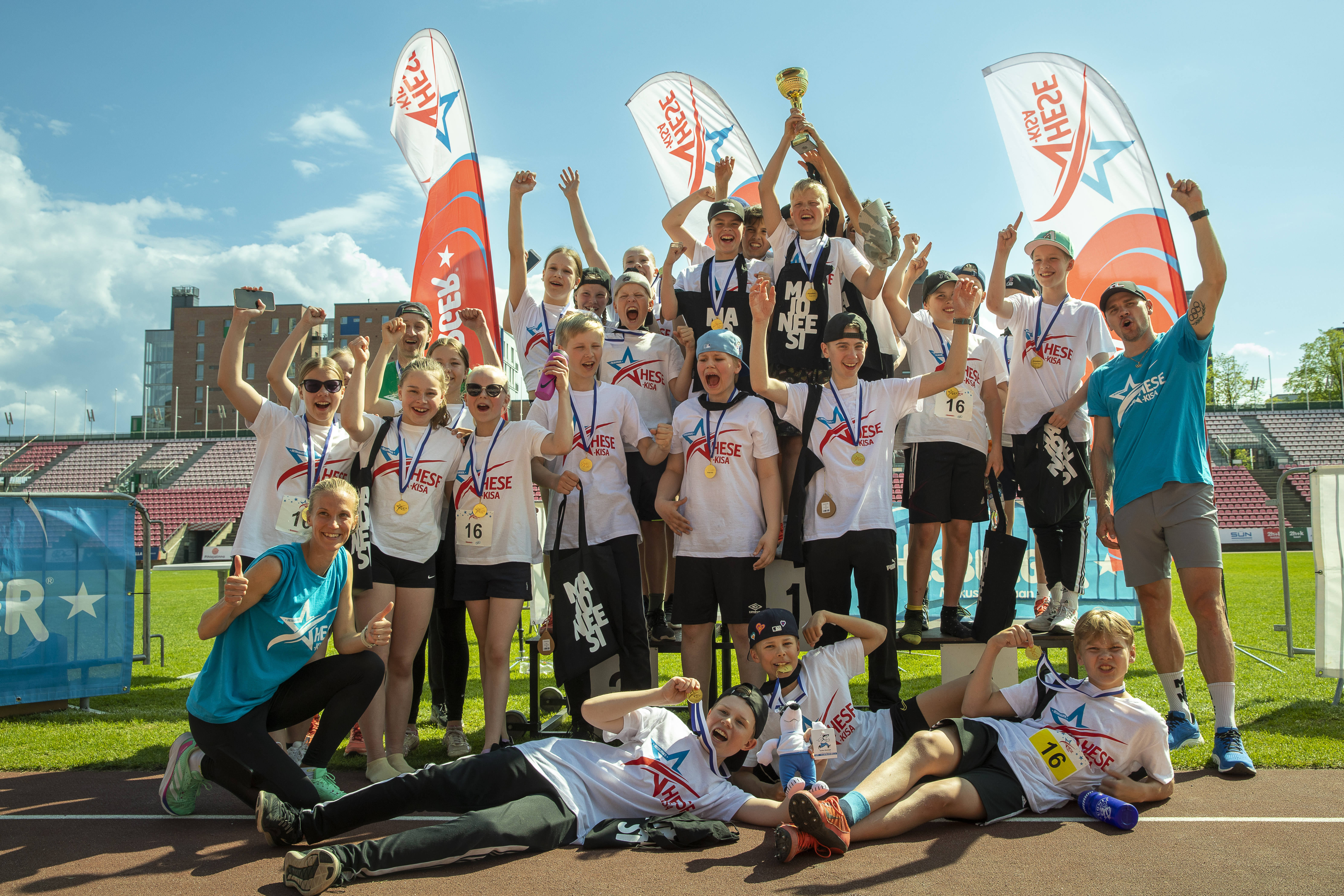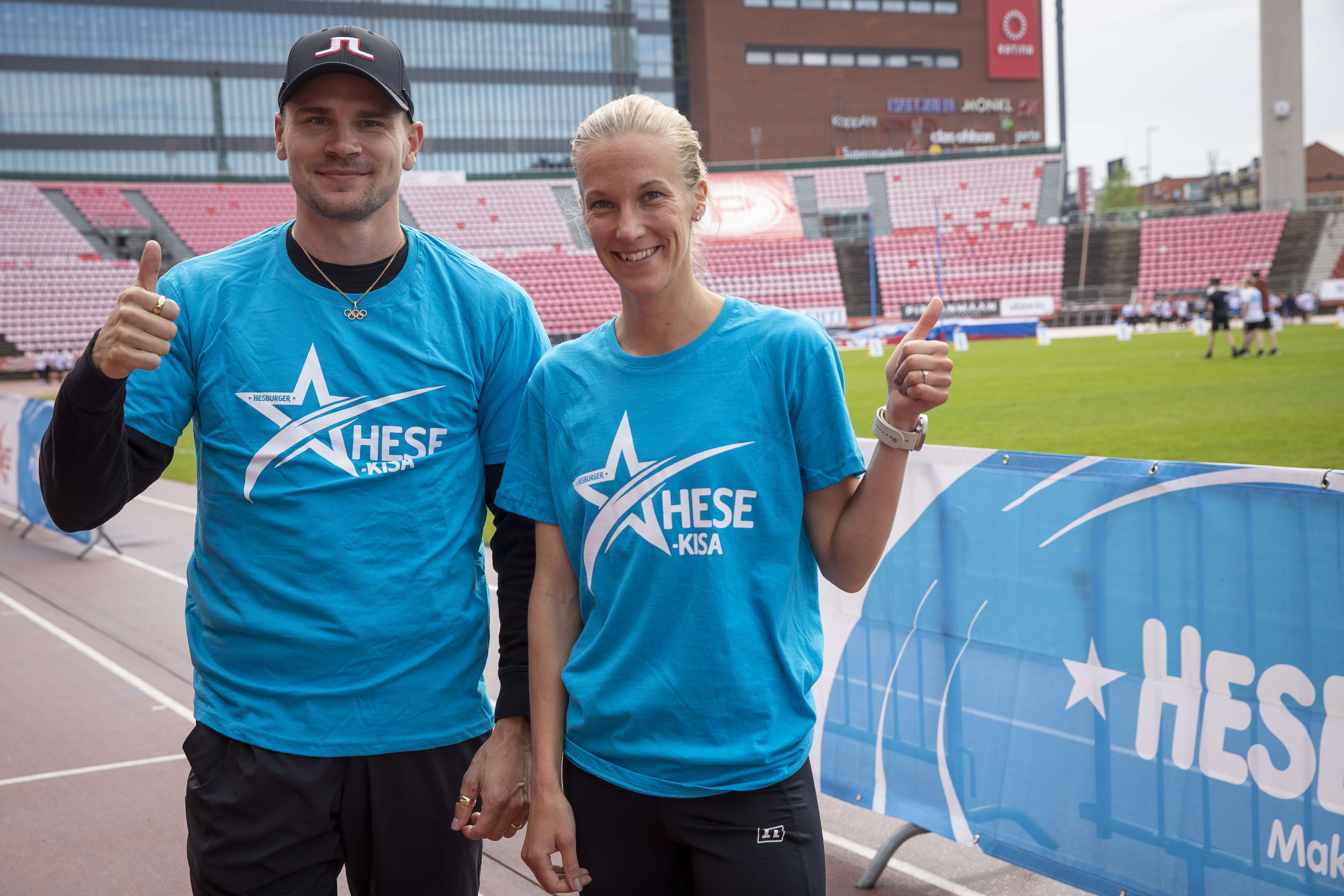 Tänä vuonna Hese-kisat huipentuvat Tampereen Ratinan stadionilla 21.5.2024. Kisoihin valmistautuvia nuoria kannustavat kummiurheilijat Elmo Lakka ja Camilla Richardsson.