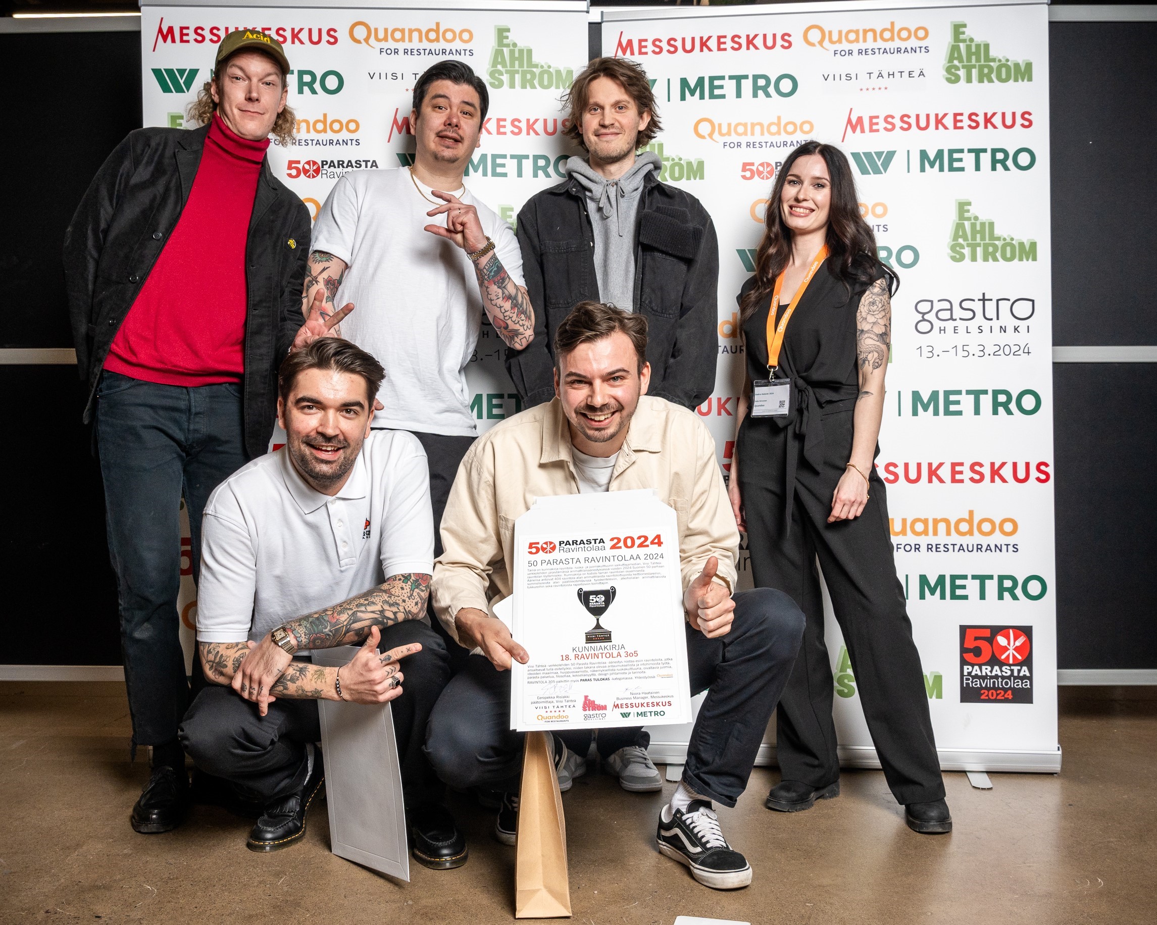 Pöytävarausjärjestelmä Quandoon jakaman Vuoden tulokas -tittelin vei nimiinsä Ravintola305 Helsingistä. E. Ahlströmin palkitsema Paras tunnelma on ravintola BsaBasissa.