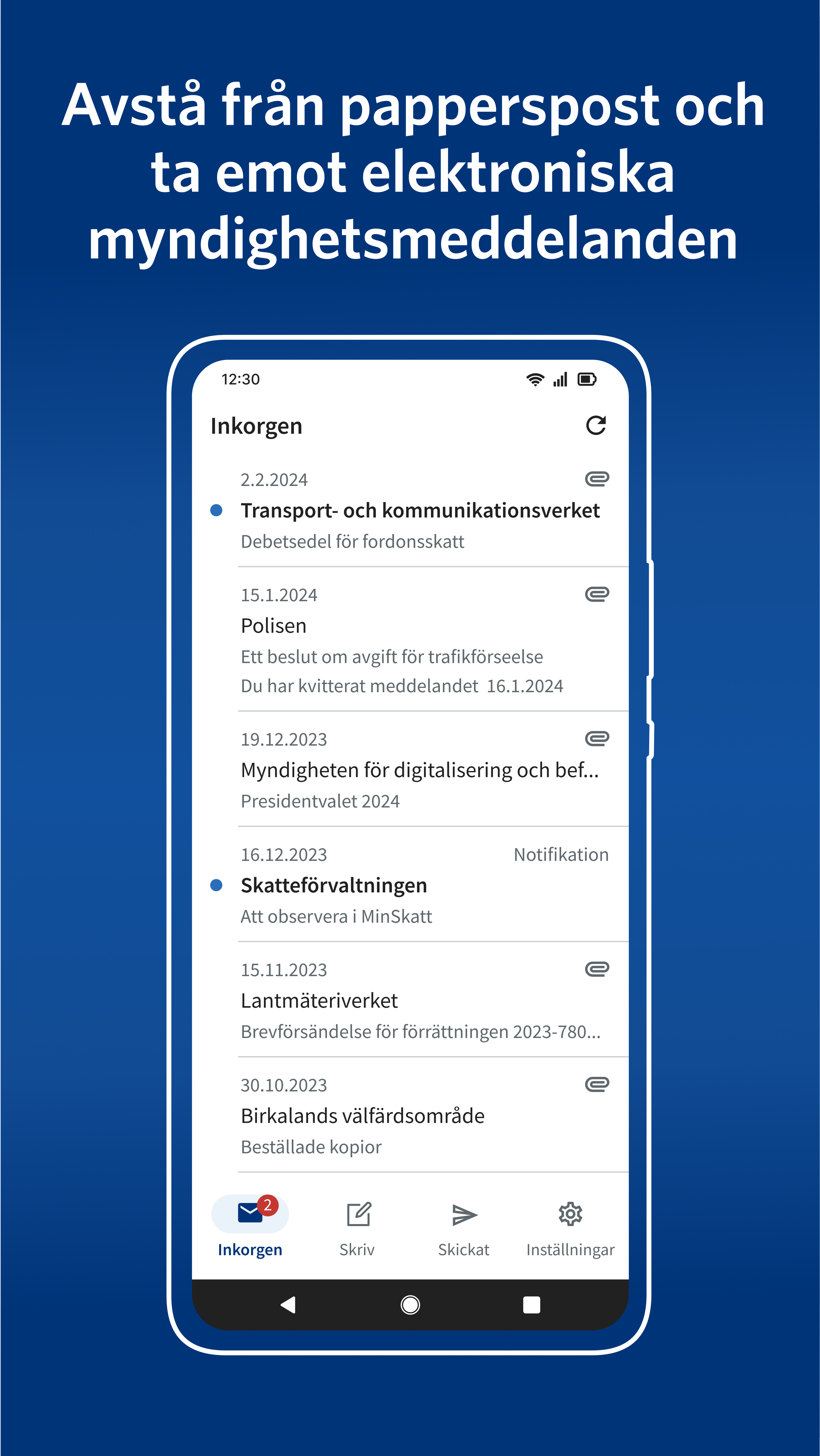 - Tjänsten ersätter pappersposten från myndigheterna.