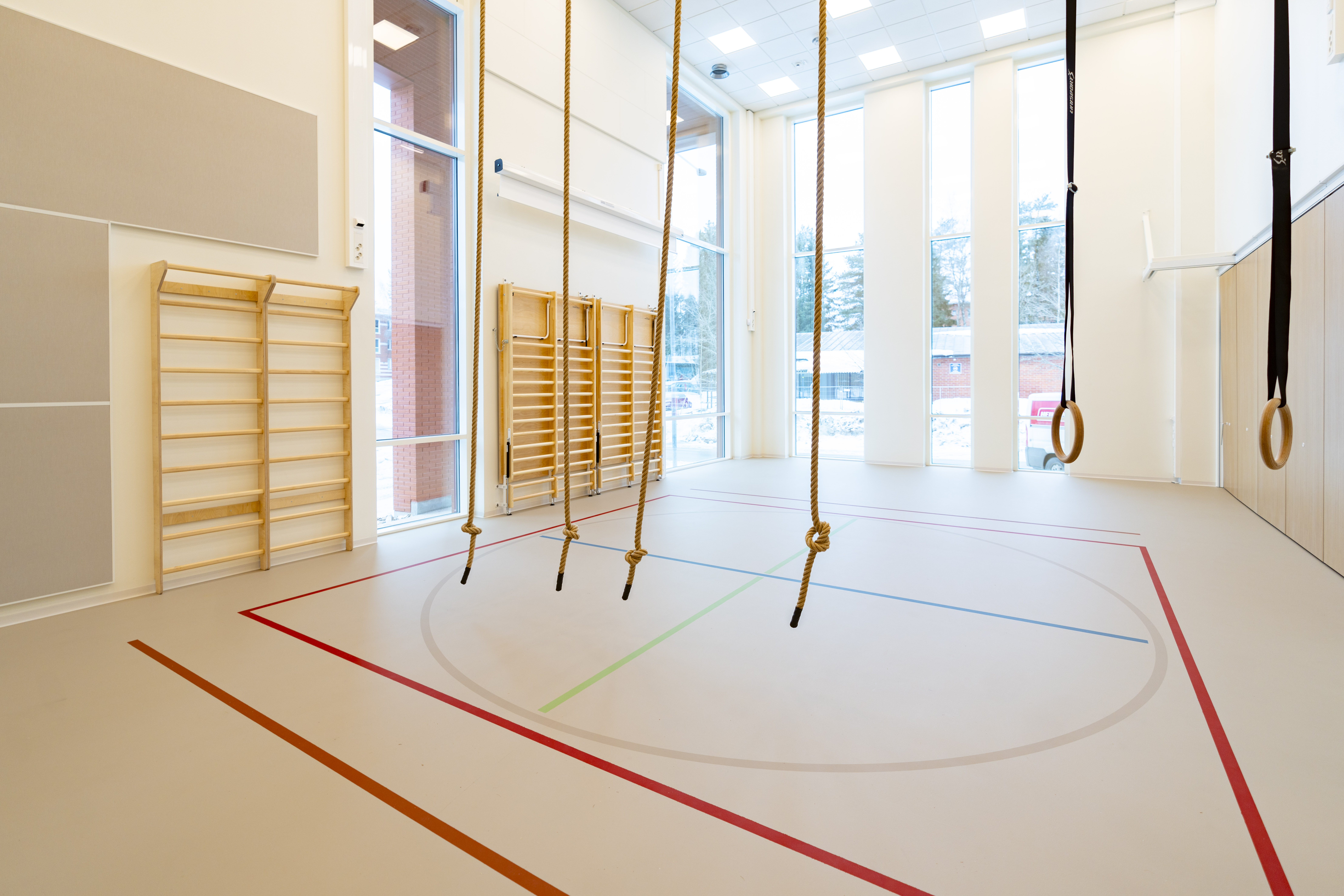 Koko päiväkodin yhteisiä tiloja ovat liikuntasali, taideverstas, aistihuone ja ruokasali. Pienemmät lapset syövät omissa tiloissaan ja isommat ruokasalissa.