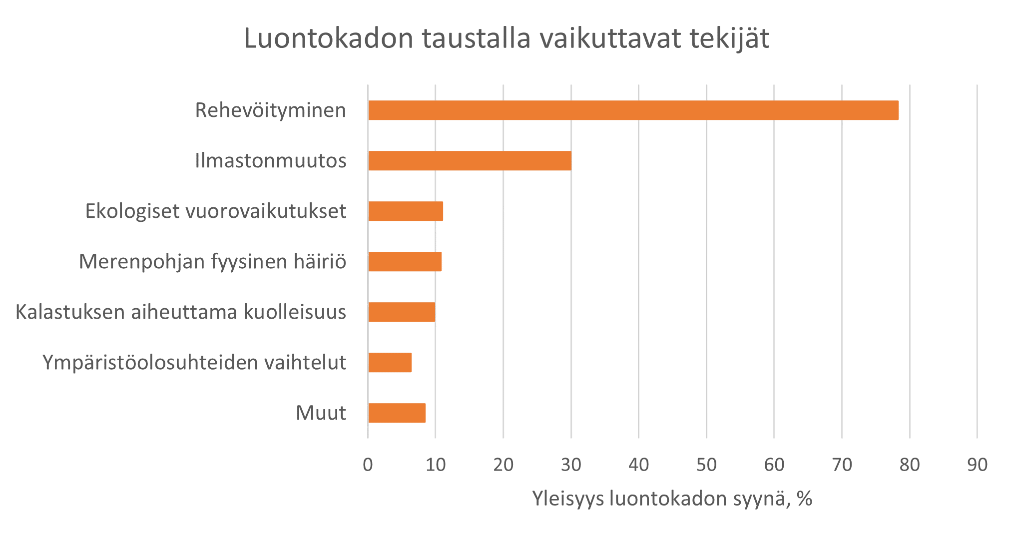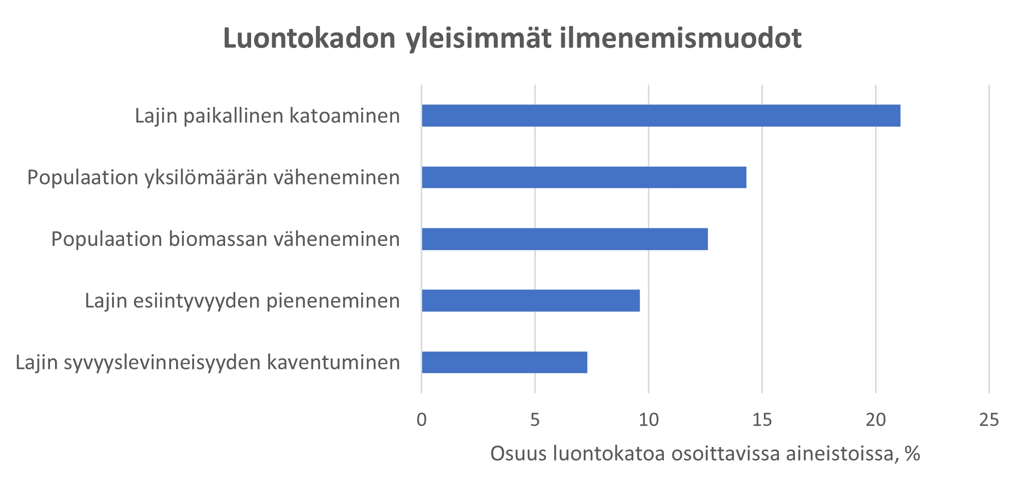 Luontokato on Suomen rannikkovesissä yleistä, ja se ilmenee monin eri tavoin – tutkimustietoa laajasti yhteen vetävässä Luontopaneelin selvityksessä havaittiin kaikkiaan 45 luontokadon eri ilmenemismuotoa. Yleisimmin luontokato ilmenee lajin esiintyvyyden pienenemisenä ja lajien paikallisena katoamisena sekä populaation runsauden eli yksilömäärän tai biomassan vähenemisenä.