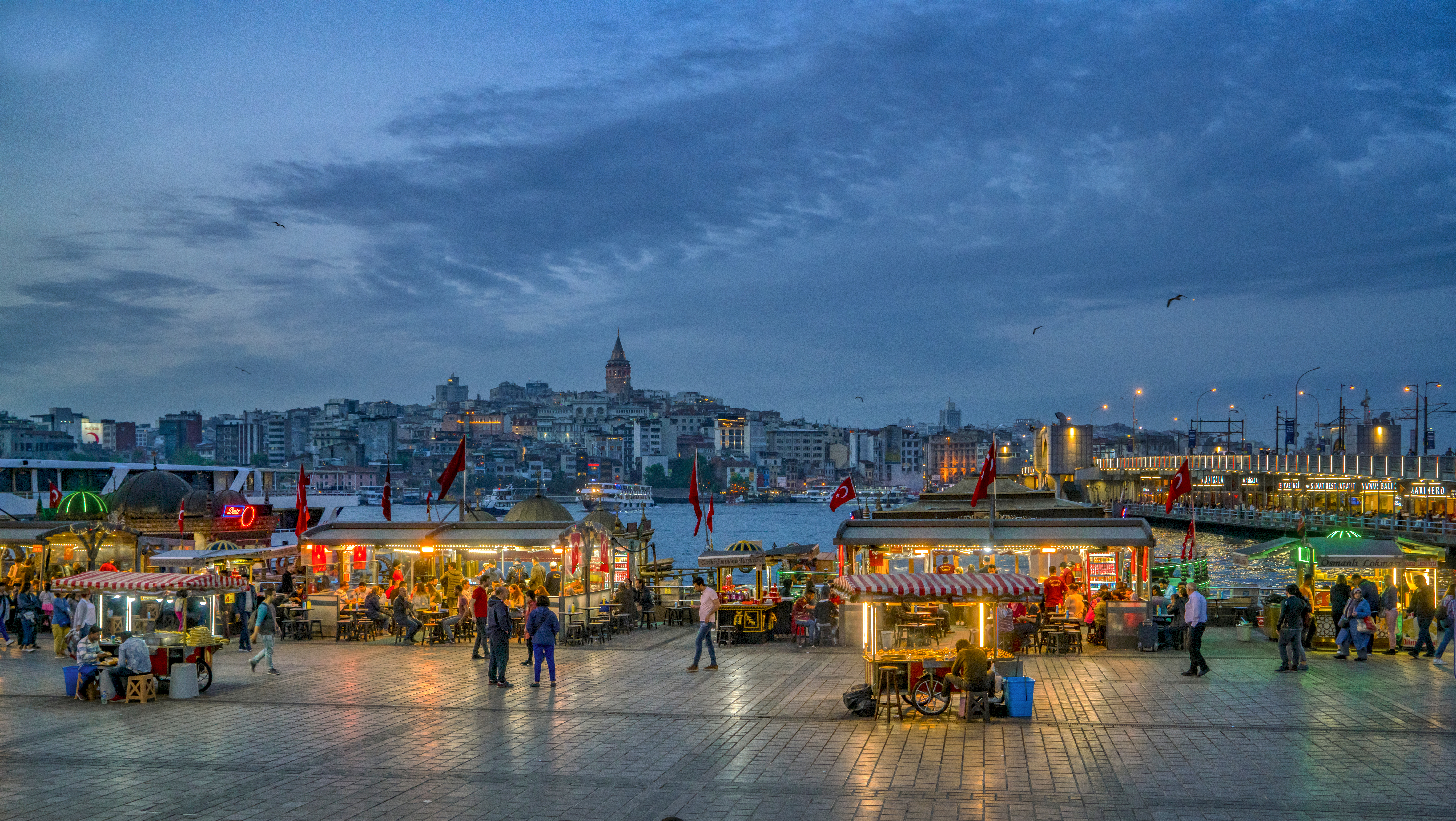 Bosporinsalmen Euroopan puolella voi nauttia merenelävistä ja paikallisista alkupaloista ylellisissä kalaravintoloissa, kuten Kuruçeşme, Arnavutköy, Bebek ja Sarıyer. Taksimista ja Beşiktaşista Euroopan puolelta ja Kadiköyn torilta Anatolian puolelta löytyy kattava valikoima tunnettuja ja kaupungille tyypillisiä katuruokia – aina kokoreçistä, döneristä ja uuniperunoista (kumpir) paistettuihin tai täytettyihin simpukoihin.