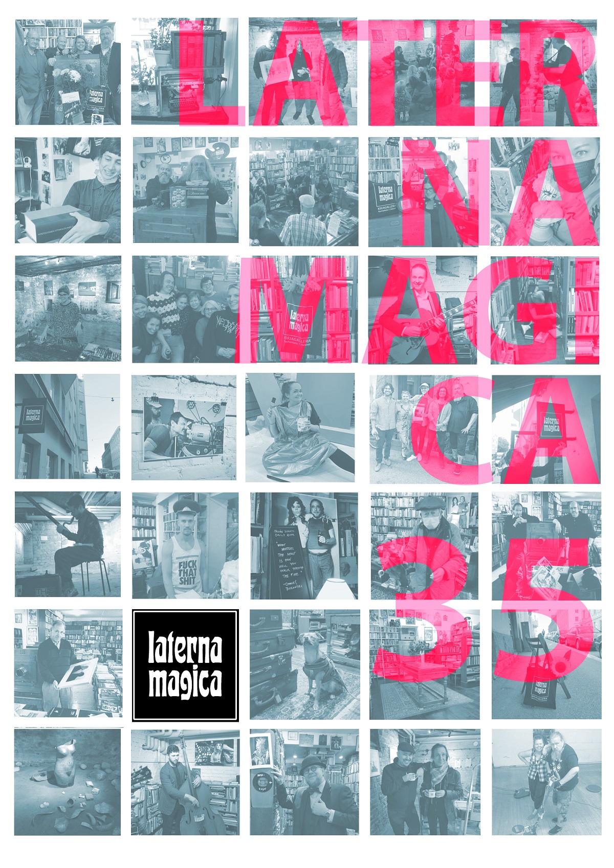 Kirjagalleriatilaan rakentuu Laterna Magican 35-vuotista taivalta valokuvin ja julistein esittelevä näyttely, jonka lisäksi tilassa nähdään pieni kokoelman taiteilija Cia Karlssonin teoksia, jotka on olleet esillä Laternassa aiemmin näyttelyissä vuonna 1998 ja 2004.