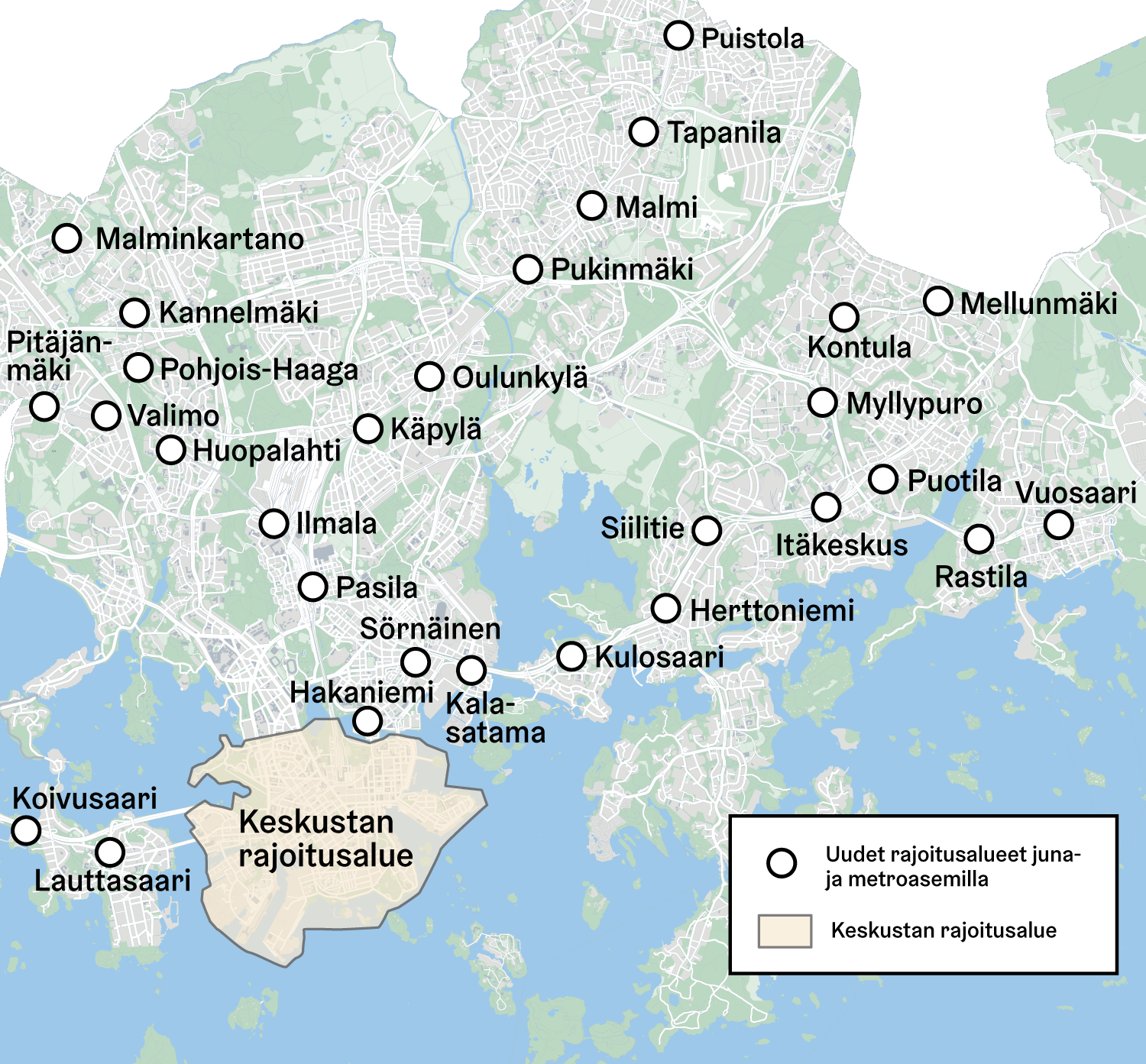 Pysäköintialueet otetaan käyttöön vaiheittain kauden aikana. Alkuun rajoitukset tulevat voimaan Pasilan, Hakaniemen, Sörnäisten, Kalasataman ja Herttoniemen asemilla.