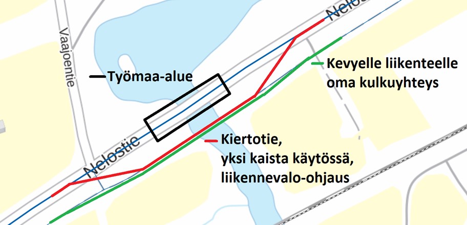 Poikkeukselliset liikennejärjestelyt voivat ajoittain ruuhkauttaa liikenteen, joten tienkäyttäjiä suositellaan käyttämään vaihtoehtoisia reittejä.