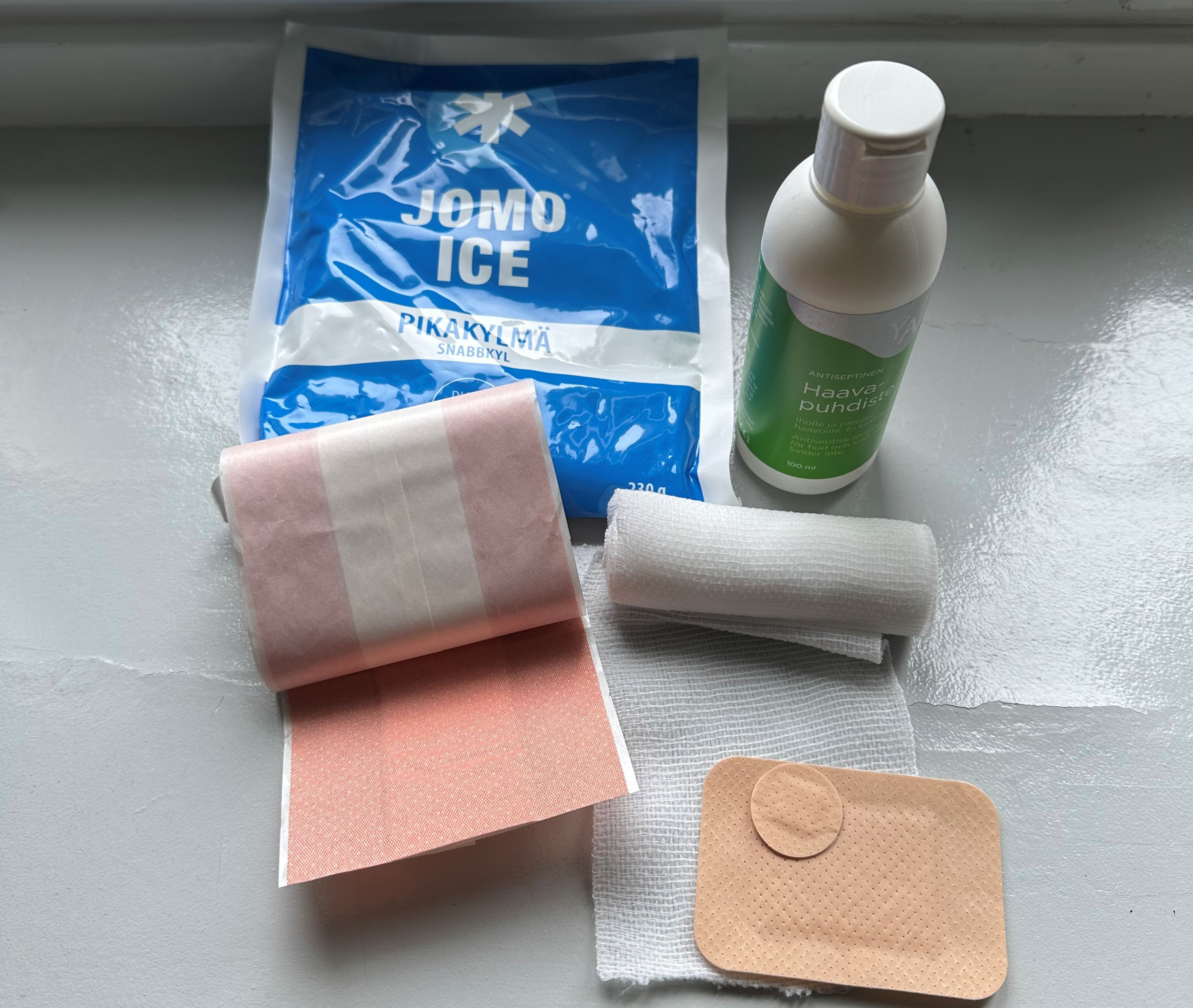 Eri kokoisia laastareita on hyvä olla erilaisiin haavoihin. Sideharsorulla on myös monikäyttöinen ja usein jopa sopivin tarvike haavanhoitoon. Sillä saa myös tarvittaessa kompressiota vammakohtaan, joka yhdistettynä kylmäpussiin on oiva tapa hoitaa vammaa. Jos haavanhoitopaketin kyljessä on hinta markoissa, on varmasti ajankohtaista päivittää ne uusiin.