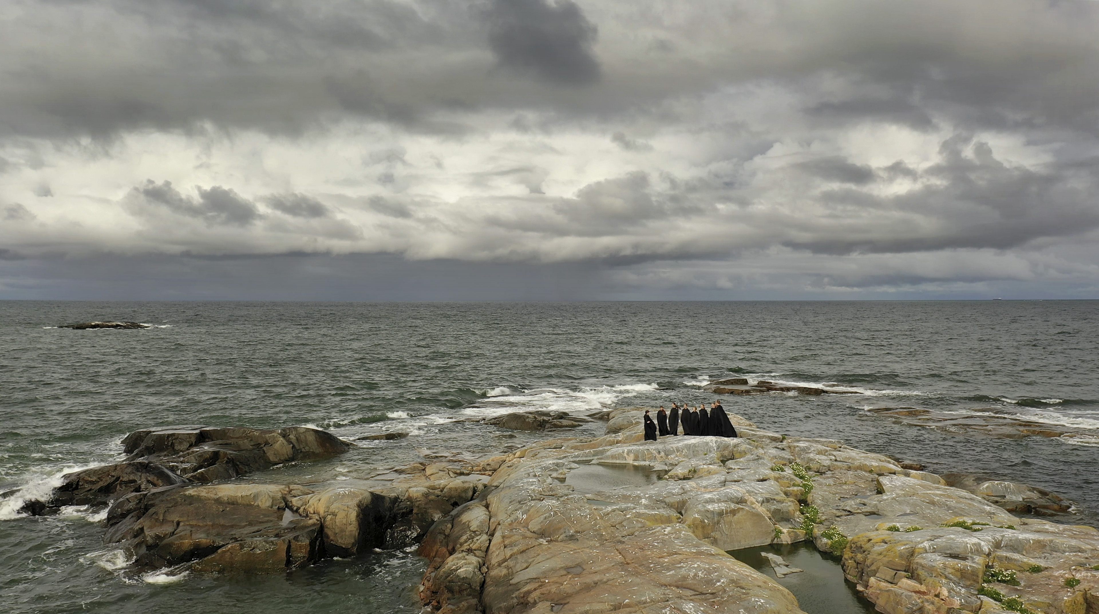 ”Det är spännande att se hur konstnären Merja Markkula lyckats skapa kostymer åt kören som simulerar skarvarnas utseende”, säger Aino Kostiainen.