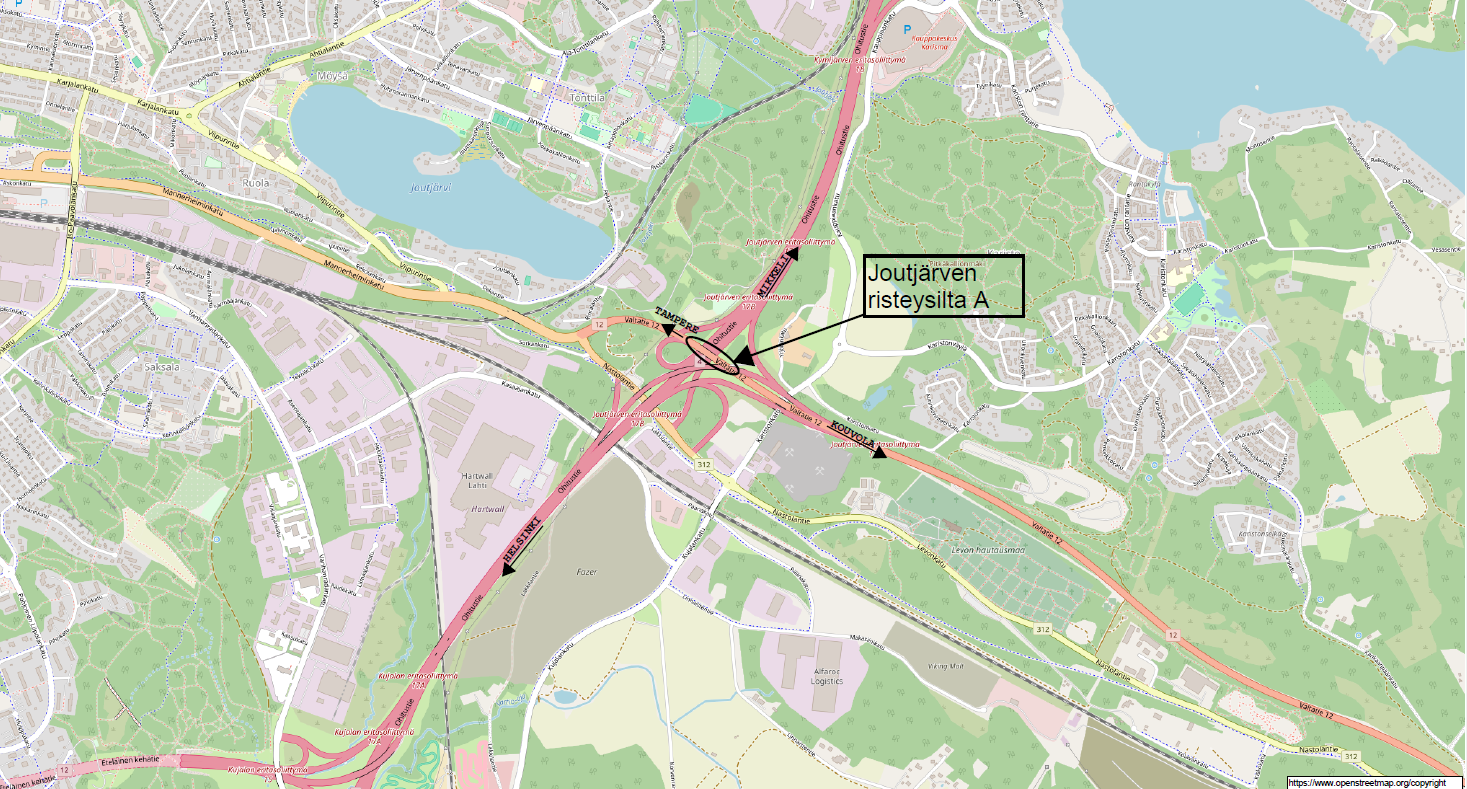Silta sijaitsee Lahden kaupungin alueella valtatien 12 ja valtatien 4 risteämäkohdassa. Korjaustyöt tehdään valtatien 12 molemmissa ajosuunnissa välillä Tampere-Kouvola.