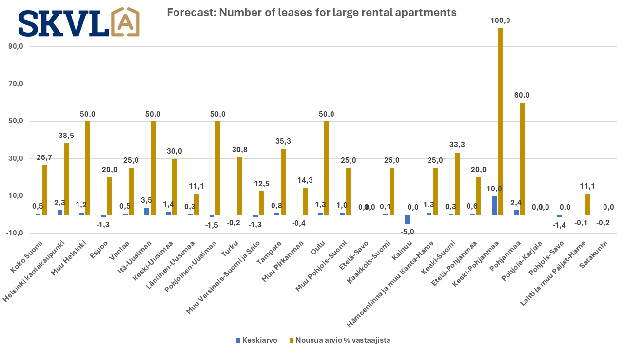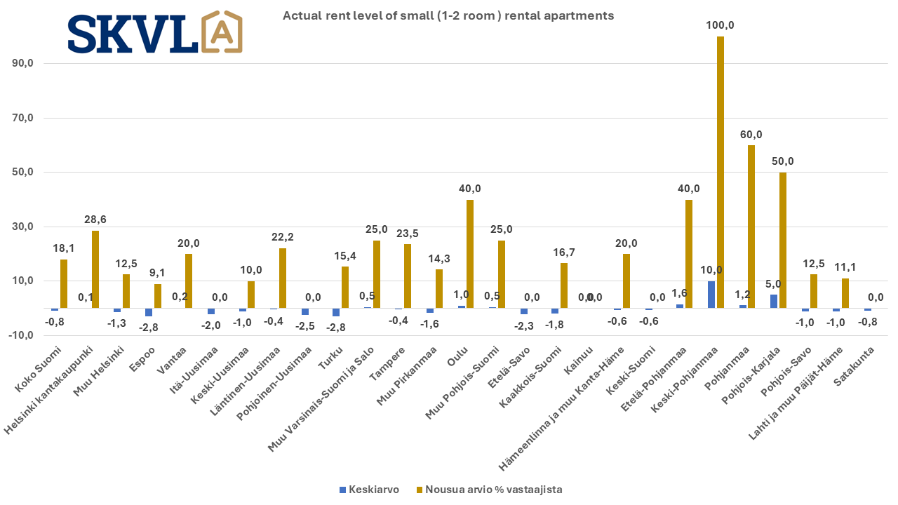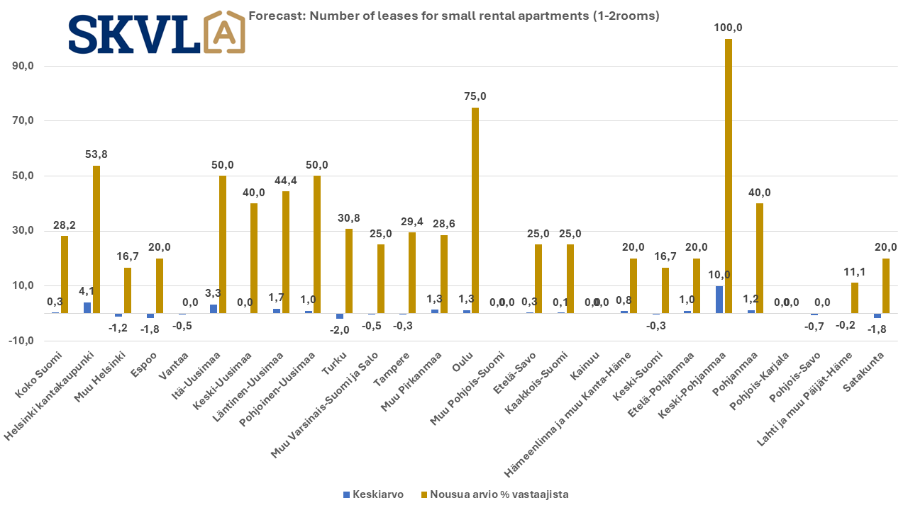 The survey investigated how changes in housing allowance and the general market situation affect the rental housing market. There is now a clear trend that tenants are switching to more affordable rental apartments, either in a more affordable area or smaller apartments. According to the forecast, there will be no significant increase in rents, with the exception of Northern Finland and parts of Ostrobothnia and North Karelia. The demand for rental housing in the smallest apartments is still not as high as the supply, so rents will not increase especially in them. This contributes to slowing down investors' enthusiasm for small apartments. However, higher charges and higher interest rates in most housing companies are constantly putting pressure on rent increases.