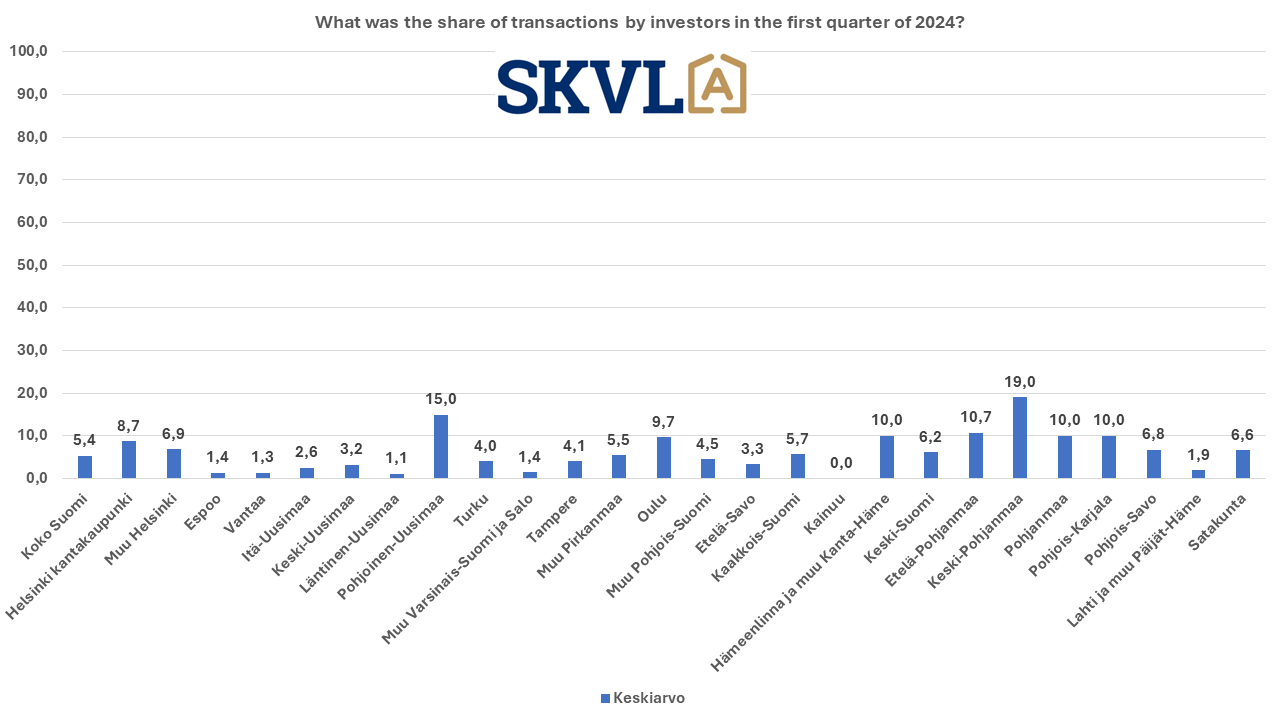 The rush to housing sales seen at the end of last year was reflected in a strong cooling of sales in the early part of the year. However, first-time homebuyers have still bought about 8–12% of homes. This indicates that if there is no pressure on the buyer to sell their own home, a lower price level is still tempting to buy their first home. Investors have also already been on the move to a greater extent, and investment apartments have been traded especially in Central and Northern Finland, as well as in Ostrobothnia and Helsinki.