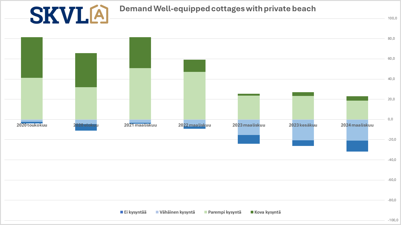 Interest in holiday homes suitable for year-round use is clearly highest in cottage sales. Cottages in good condition and well-equipped on the shores of large bodies of water are still the most popular types of cottages. However, cottage sales are seeing the impact of the general economic situation and have clearly returned to the pre-corona market situation, where cottages in good condition and in the right location are selling as before and sales start to take place when the summer season starts.