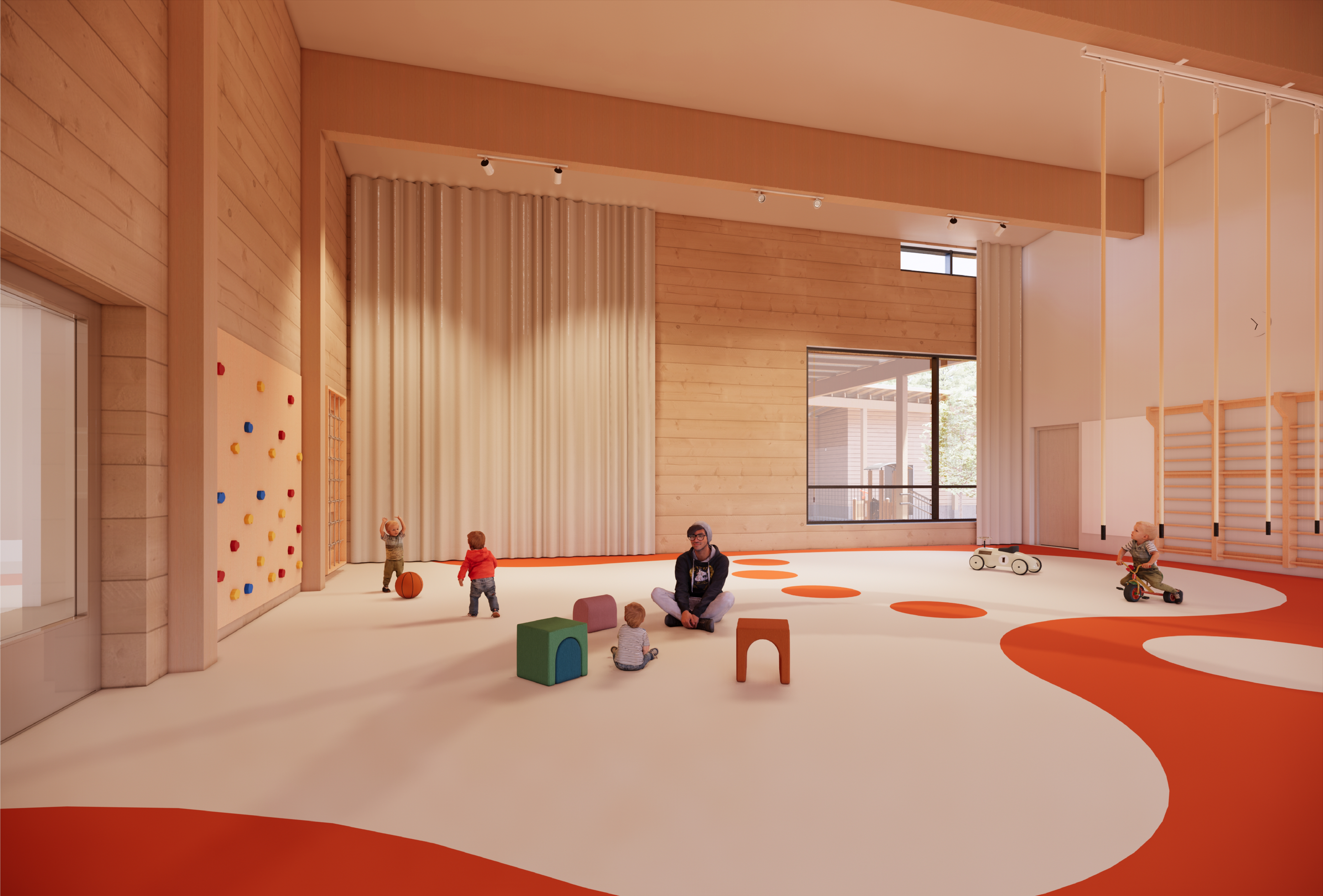 Päiväkodin tilat on suunniteltu 100 lapselle. Ryhmätilat on suunniteltu siten, että niitä voidaan muokata eri tilanteisiin sopiviksi, esimerkiksi eteiseen voidaan muodostaa tiloja pienryhmille irtokalustein. Kahdelle ryhmälle suunnitellaan yksi lepohuone, johon tulevat kaappisängyt pienille lapsille.