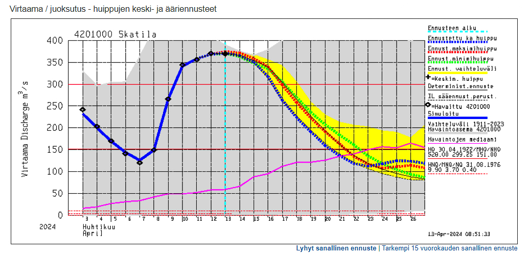 I Esse ås avrinningsområde flödar Kuninkaanjoki och Savonjoki stort. Vattenytan i Alajärvi kommer att stiga till höga nivåer. Lappajärvi väntas stiga till högsta nivå i början av maj.
