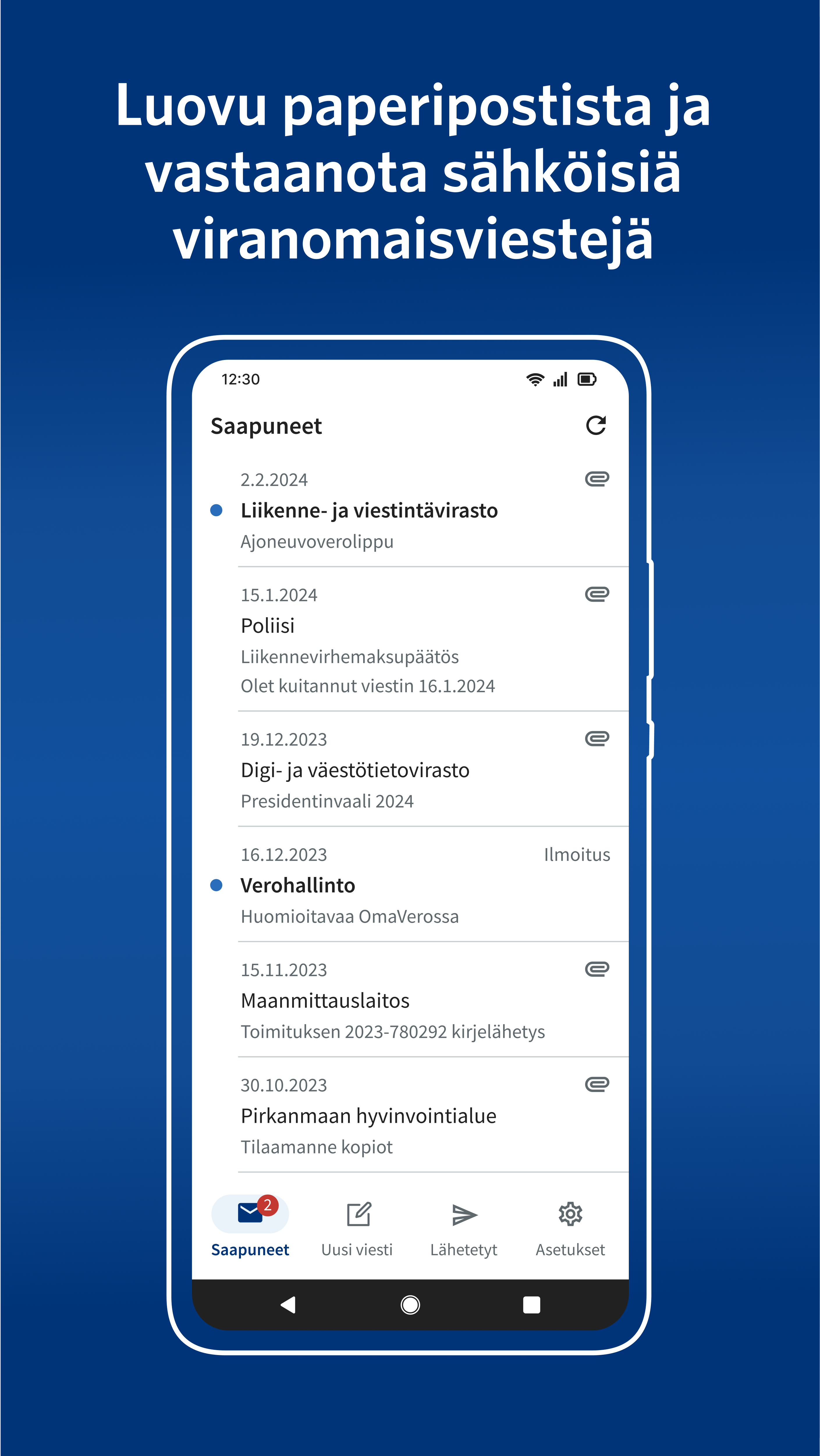 - Palvelu korvaa viranomaisten lähettämän paperipostin.