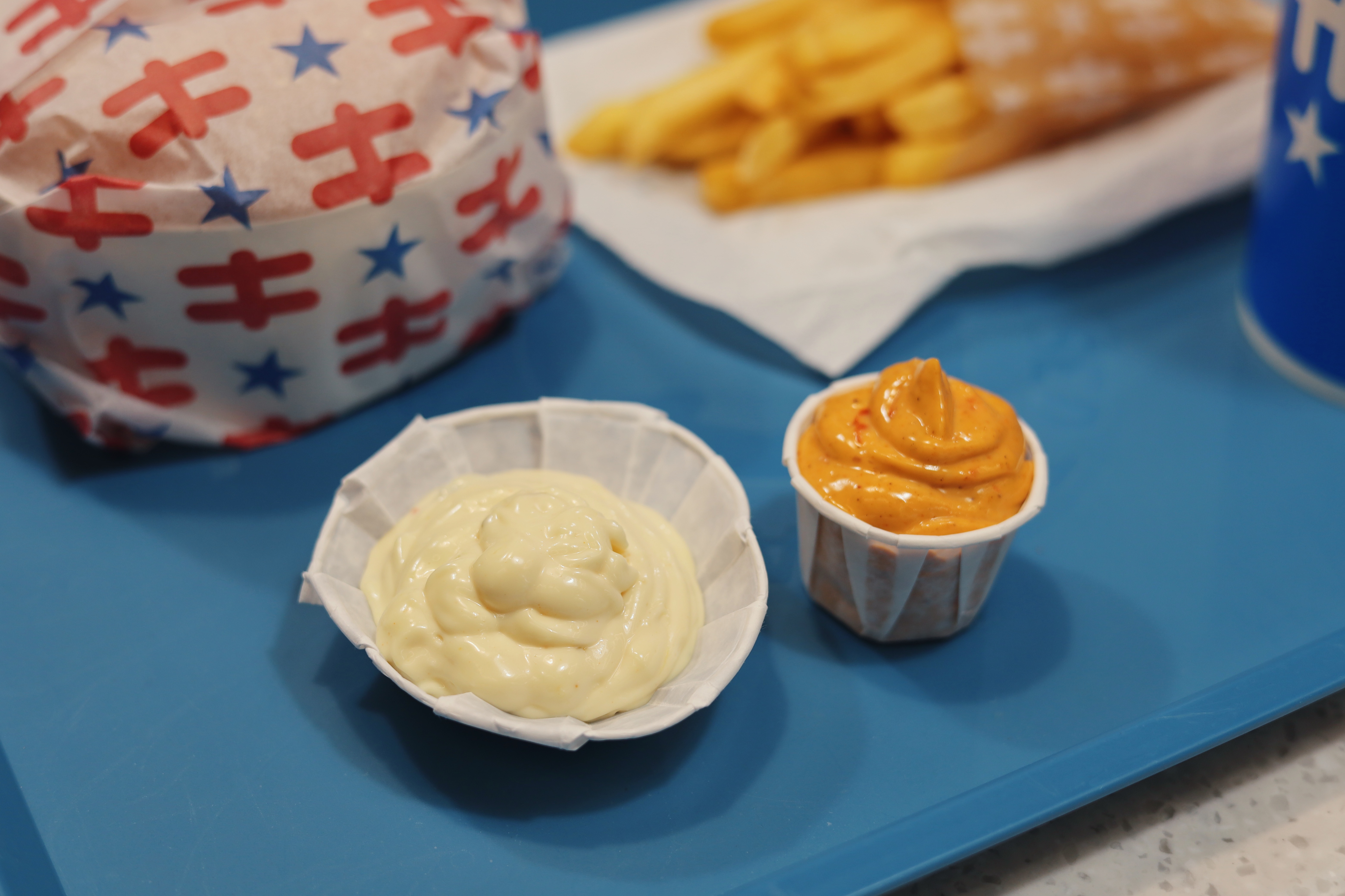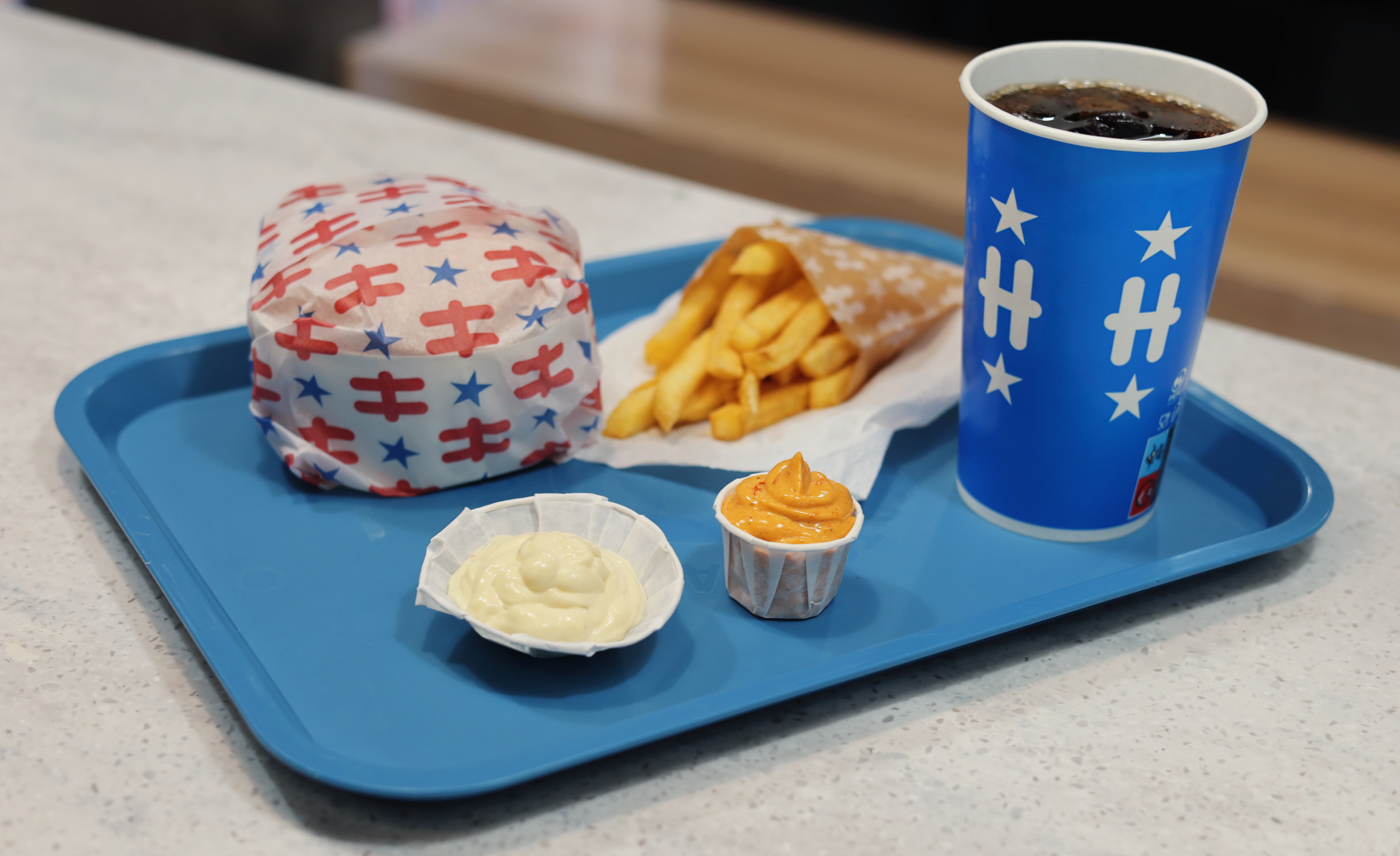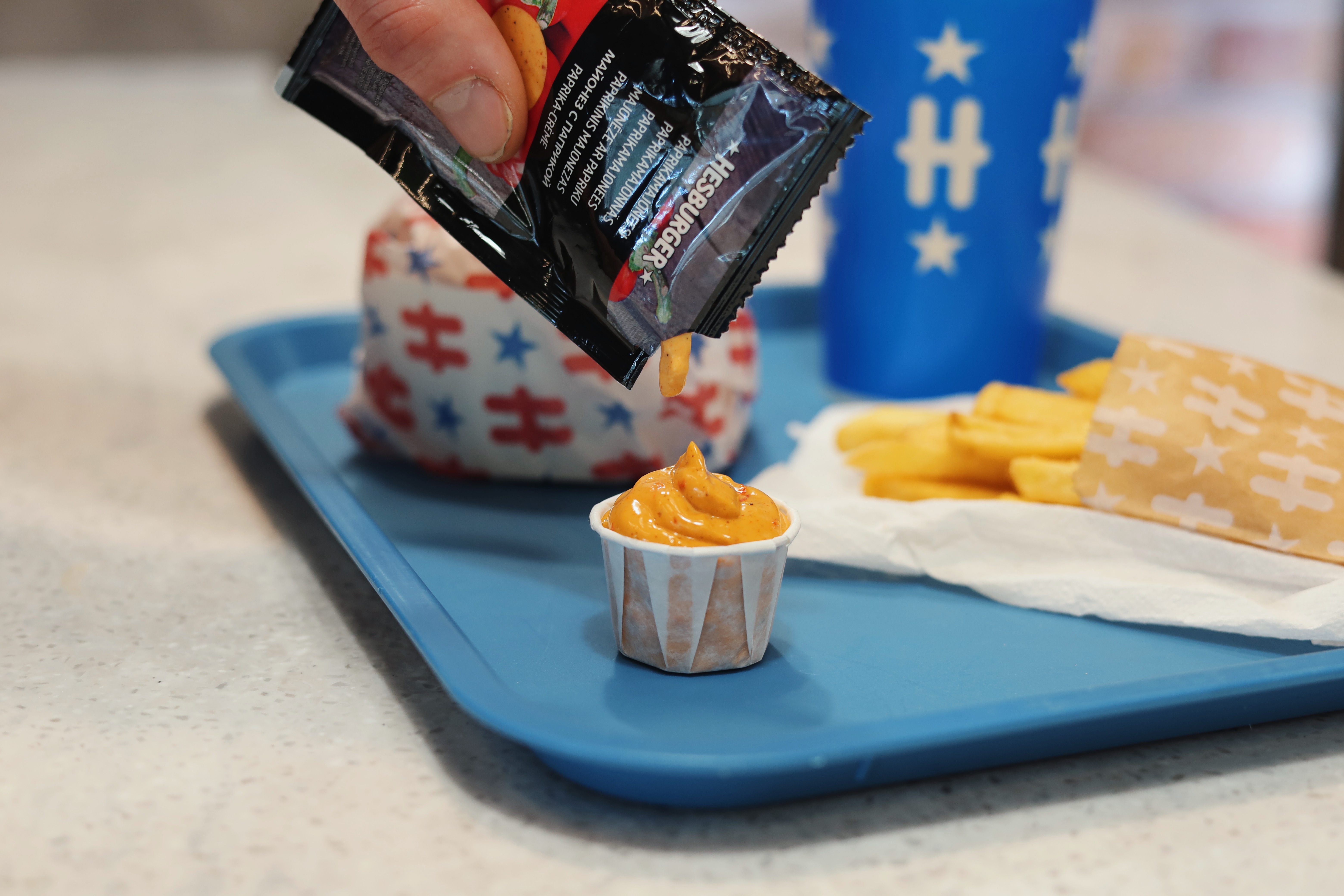 Hesburgerissa käytetään majoneesille sopivaa kuppia. Yllättävän moni suomalainen ei kuitenkaan tiedä kikkaa, jolla majoneesia mahtuu enemmän kuppiin.
