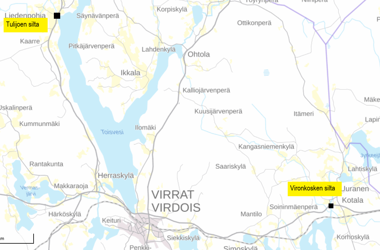 Pirkanmaan elinkeino-, liikenne- ja ympäristökeskus korjaa syksyyn mennessä Tulijoen ja Vironkosken sillat Virroilla.