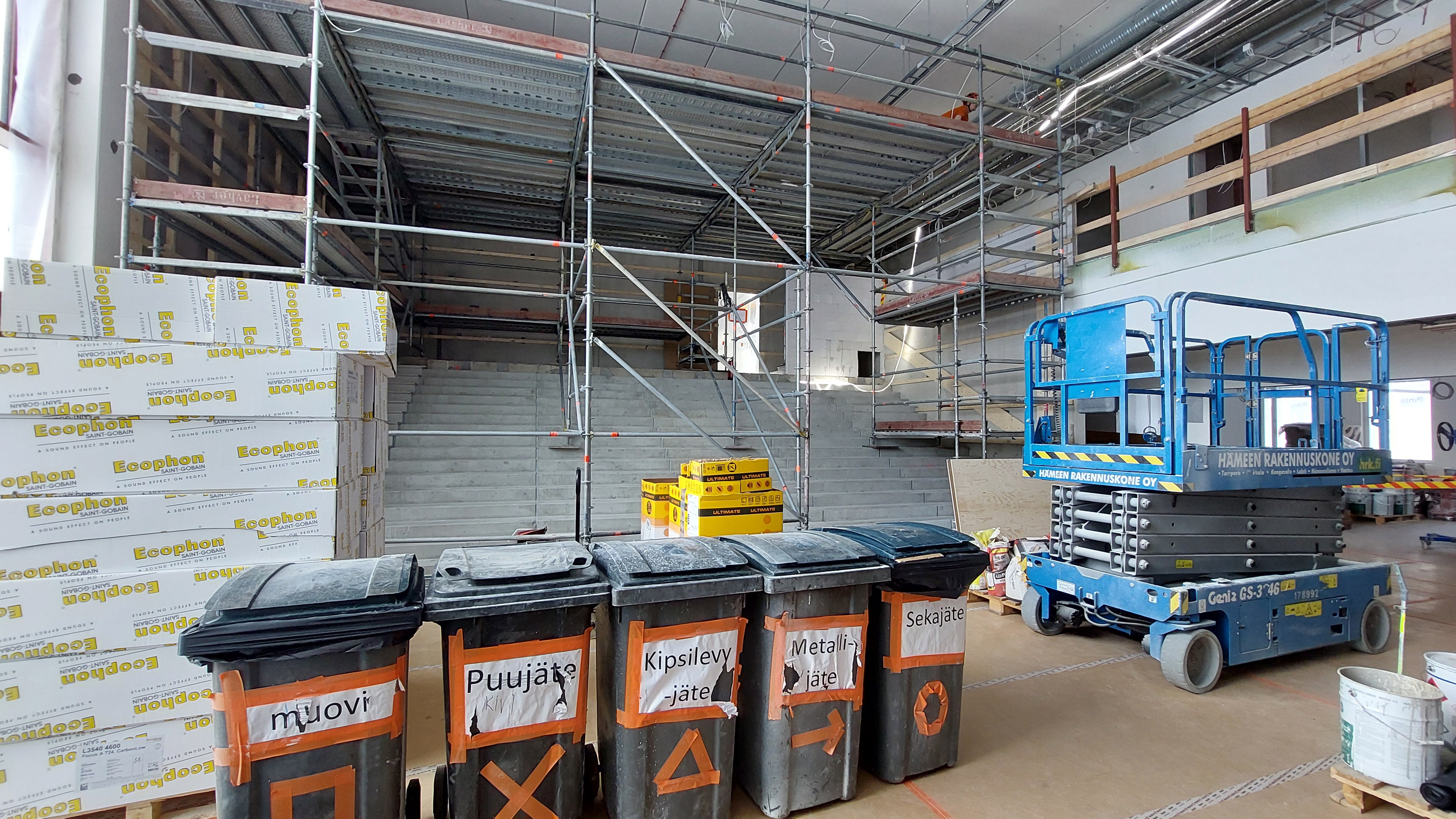 Harjannostajaisissa päästiin tutustumaan opettajainhuoneen laajennukseen opastetulla ja työmaasta rajatulla kierroksella.