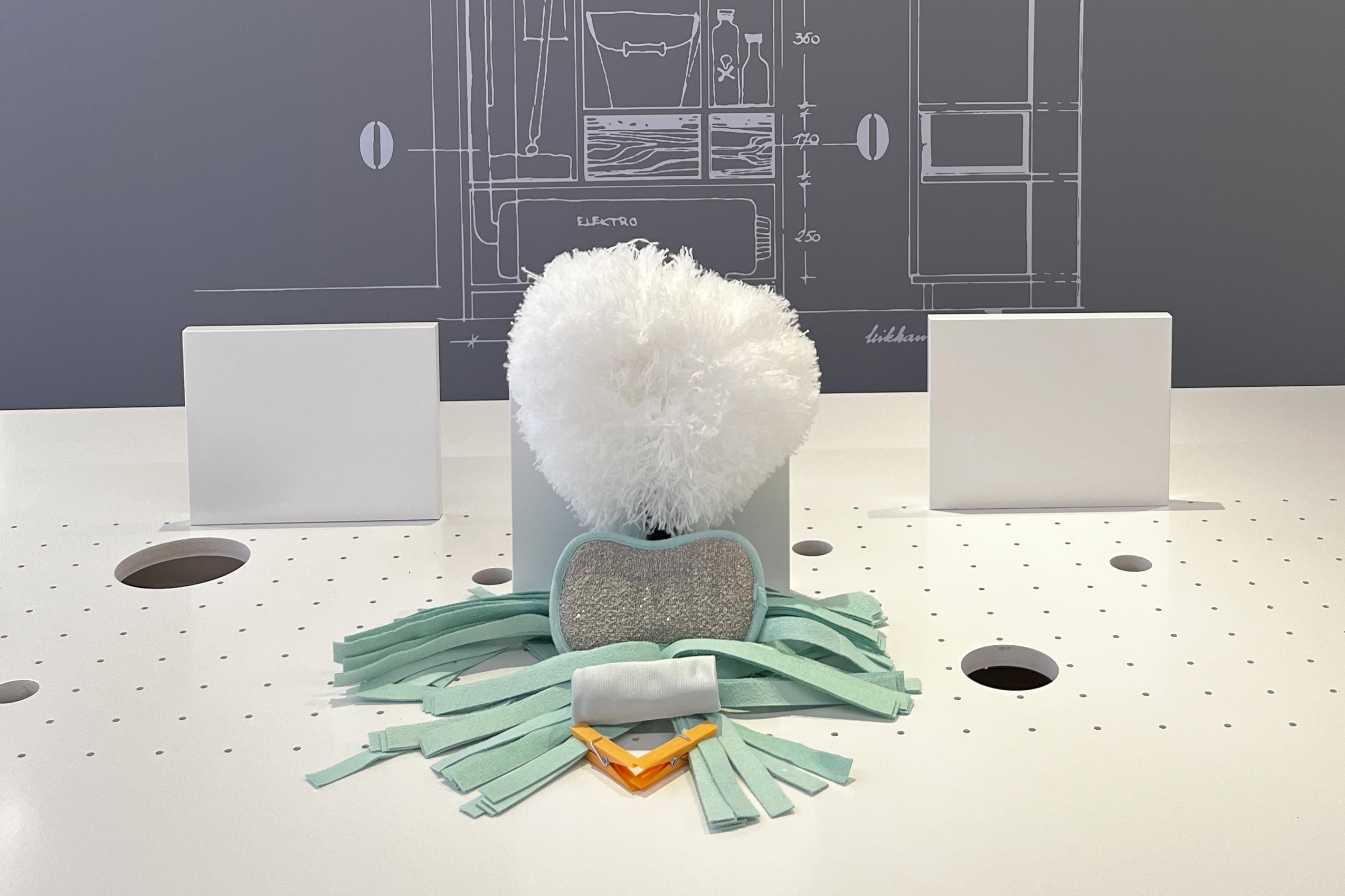 Sinituotteen siivousvälineistä voi tehdä omia taideteoksia Arkkitehtuurimuseon Siivouskomeroksi nimetyssä tilassa. Samassa yhteydessä voi pysähtyä kuuntelemaan siivousalan ammattilaisten tarinoita ja kuunnella siivoukseen liittyvää äänimaailmaa. Arkiset asiat saavat nopeasti uusia ulottuvuuksia.