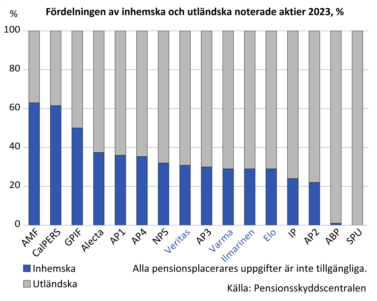 - Finland: arbetspensionsbolagen Elo, Ilmarinen, Varma och Veritas och Sjömanspensionskassan (SPK).