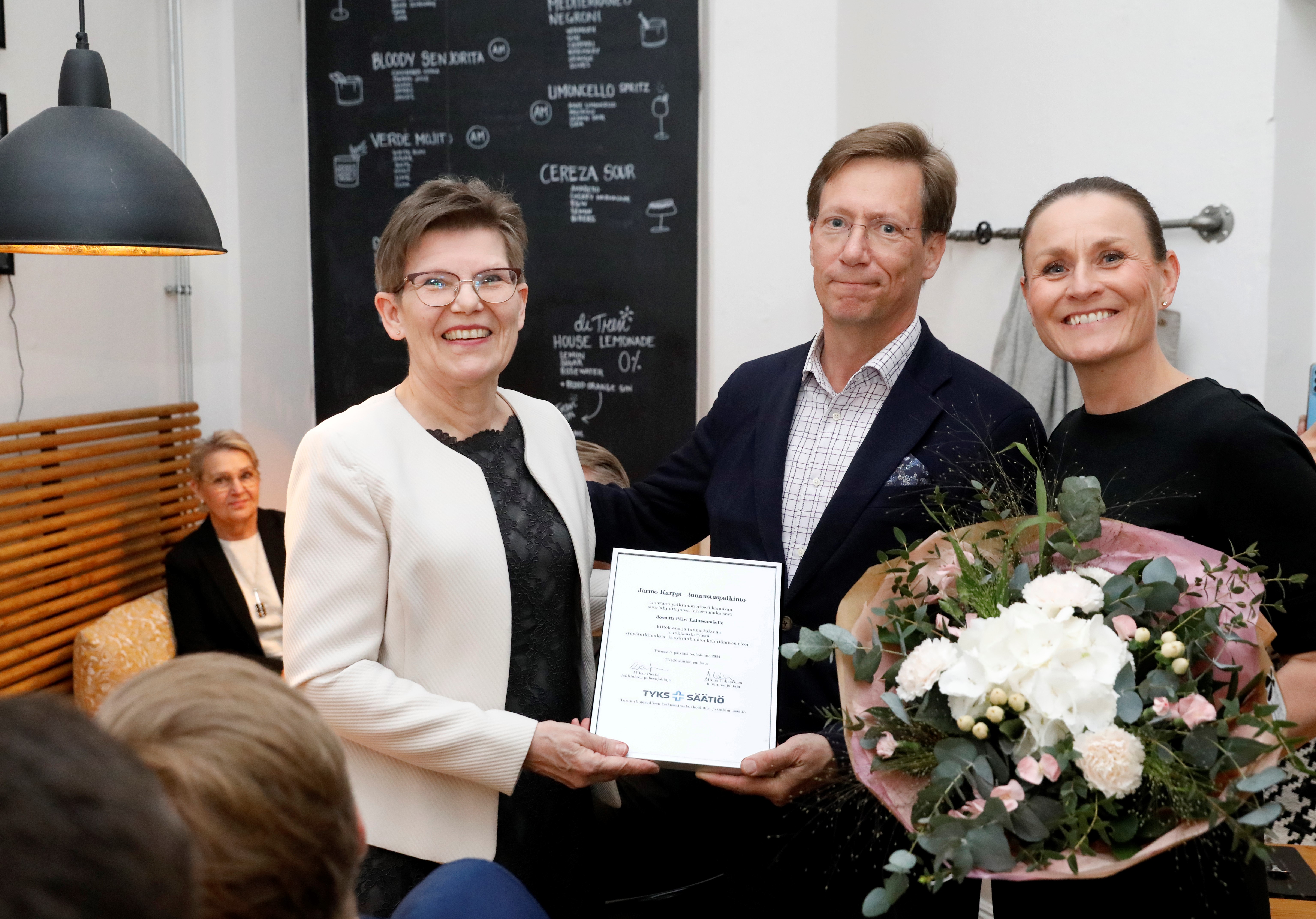 – TYKS-säätiön hallitus on ylpeä voidessaan jakaa ensimmäisen Jarmo Karppi -tunnustuspalkinnon Tyksissä uraauurtavaa kehitystyötä ja tutkimusta tekevälle dosentti ja osastonylilääkäri Päivi Lähteenmäelle. Tyksissä vuonna 2015 toimintansa aloittanut lapsena syövän sairastaneiden myöhäisvaikutuspoliklinikka jatkokehittelyineen tuo apua aiemmin vähemmälle huomiolle jääneille nuorille aikuisille. Uusilla digitaalisilla avauksilla voidaan vaikeassa taloustilanteessa edelleen kehittää palvelujamme, toteaa TYKS-säätiön hallituksen puheenjohtaja Mikko Pietilä.