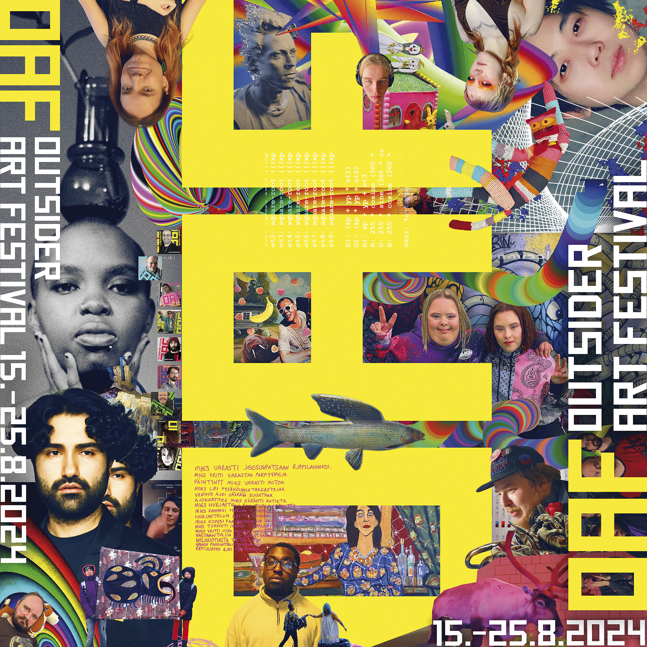 Outsider Art Festival OAF on neljättä kertaa järjestettävä kaupunkifestivaali, joka juhliii yhdenvertaisuutta elokuussa 15.-25.8.2024. OAF on Helsingin juhlaviikkojen ystäväfestivaali, jonka avajaisia juhlitaan perinteisesti Taiteiden yönä. OAF esittää monimuotoisen ja valloittavan kattauksen musiikkia, kuvataidetta, esittävää taidetta, elokuvia, kirjallisuutta ja elämäntarinoita.