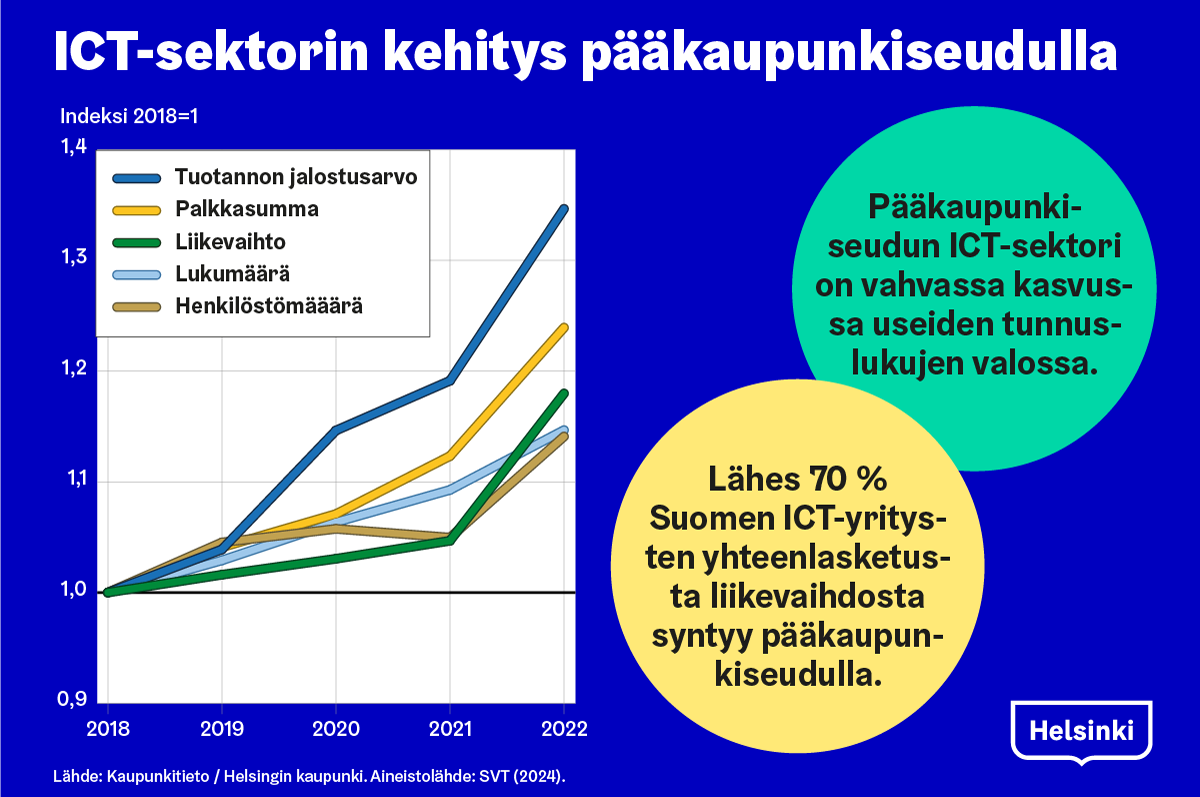 ICT-sektori on yksi Suomen voimakkaimmin viime vuosina kasvaneista toimialoista. Se on noussut kokoluokaltaan Suomen suurten toimialojen rinnalle ja sen vuosittainen liikevaihto ylittää jo rakentamisen toimialan. Lähes 70 prosenttia kaikkien suomalaisten ICT-yritysten yhteenlasketusta liikevaihdosta syntyy pääkaupunkiseudulla, ja yli puolet alan henkilöstöstä työskentelee joko Espoossa tai Helsingissä. Erityisesti ohjelmistokehitys on ollut viime vuosina vahvassa kasvussa.
