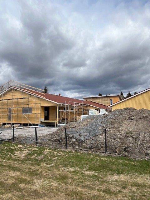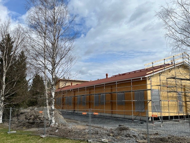 Rakentaminen käynnistyi vasta neljä viikkoa sitten, mutta työmaa etenee jo muutaman viikon aikataulua edellä. Laajennuksen toteuttaa Finnlamelli, jolla on vankka kokemus hirsisten oppimisympäristöjen rakentamisesta.