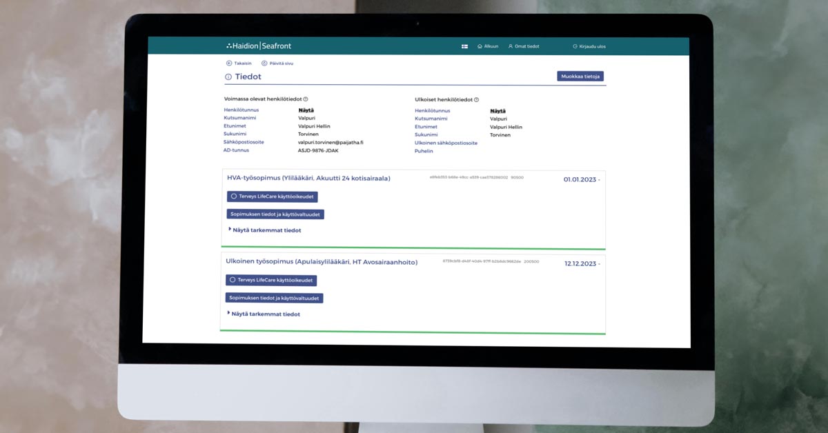 – Asiakas- ja potilastiedot saavat olla vain niiden henkilöiden saatavilla, joilla on tehtävänsä puolesta oikeus niitä nähdä. Koska uudessa järjestelmässä työntekijän tarvitsemat käyttöoikeudet määritellään työsopimuksen perusteella, on peruste käyttöoikeuksille aina selvä, eikä työntekijöille kerry tarpeettomasti oikeuksia eri järjestelmiin tai henkilötietoihin, järjestelmän toimittaneen Haidionin varatoimitusjohtaja Joonatan Henriksson kuvailee.