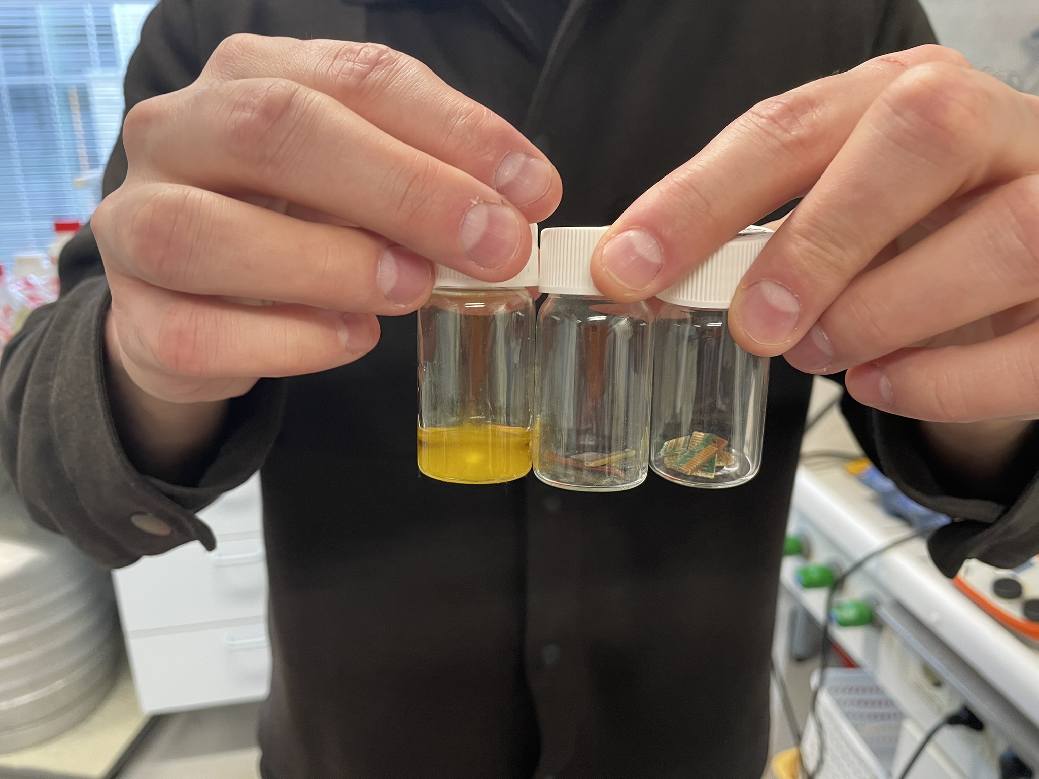 Helsingin yliopiston tutkijat testasivat orgaanisia liuottimia murskattuihin tietokoneen piirilevyihin, joista saatiin kulta ja kupari eristettyä. Hopea erotettiin murskatuista vanhoista aurinkopaneeleista. Tämä on erityisen mielenkiintoinen tulos, sillä aurinkopaneelit ovat suuren volyymin tuote ja niiden kierrättäminen on ollut tähän asti hyvin haasteellista.
