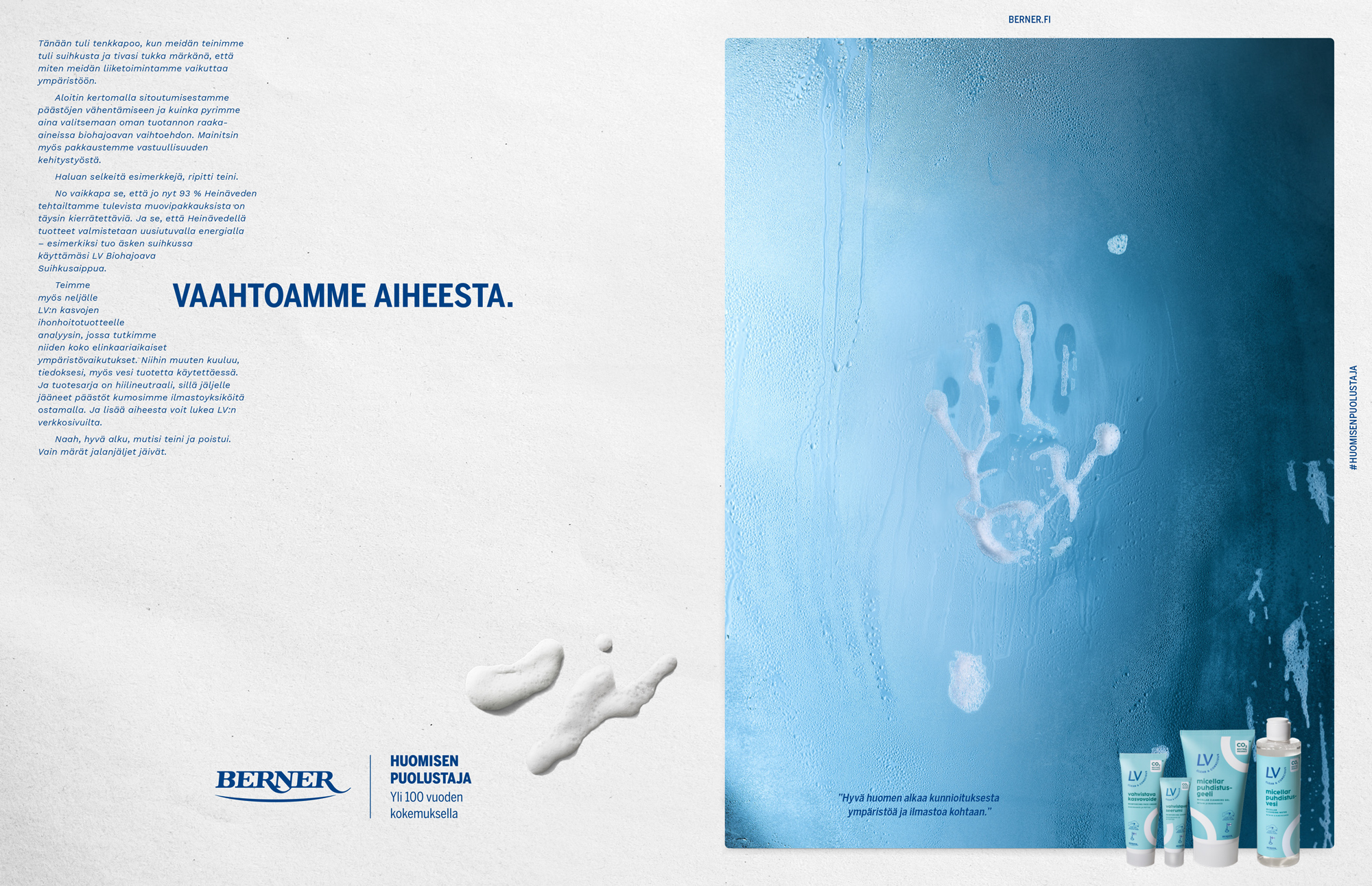 Vuoden aikakauslehtimainoksena palkittiin Bernerin harmoninen Vastuullisuuden jäljet -mainossarja, jossa taktinen mainonta ja vastuullisuusviesti kohtaavat luontevasti. Mainossarja edustaa klassista, kaunista ja huolella ajateltua aikakauslehtimainontaa.