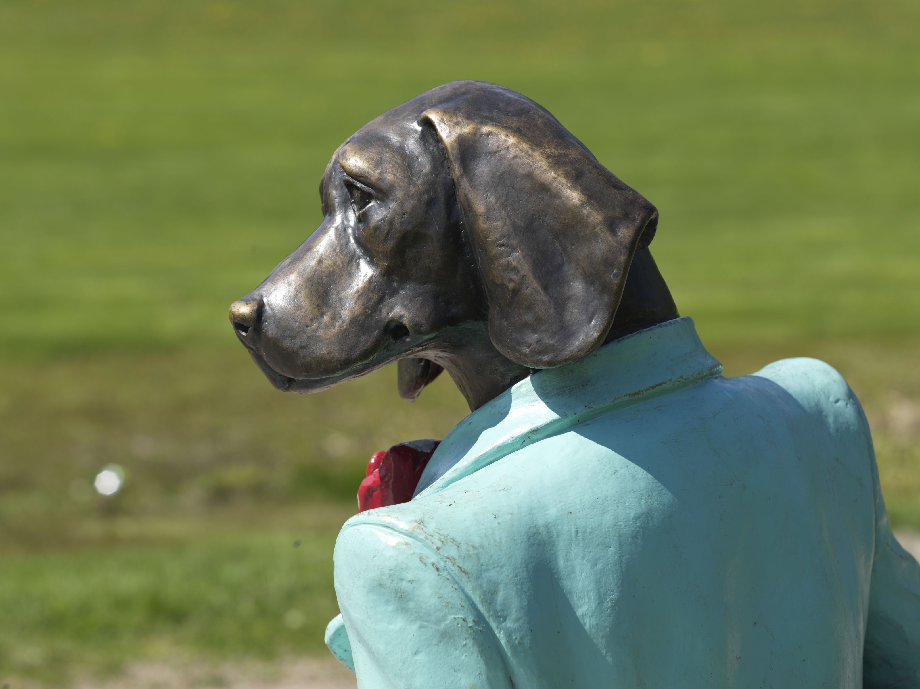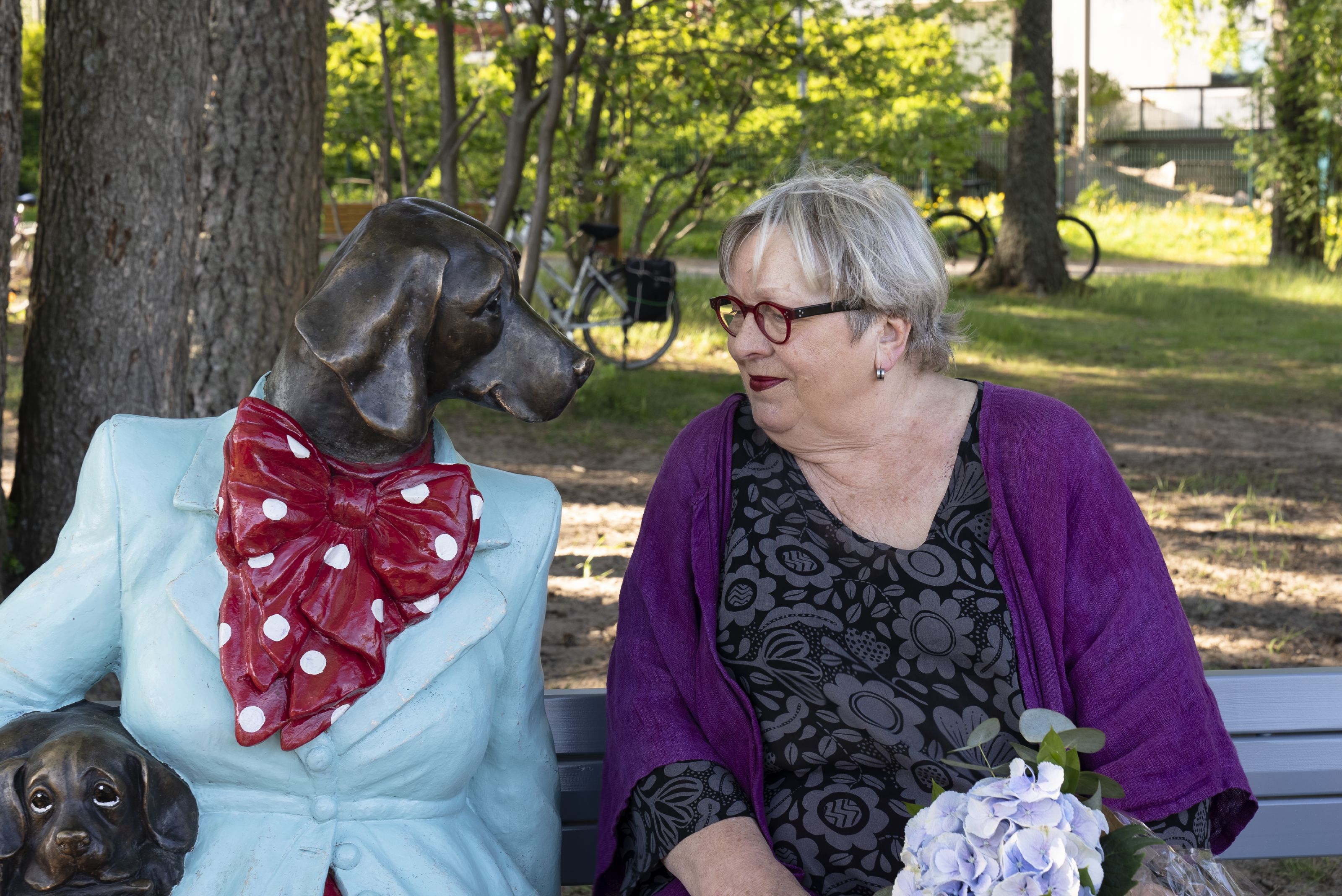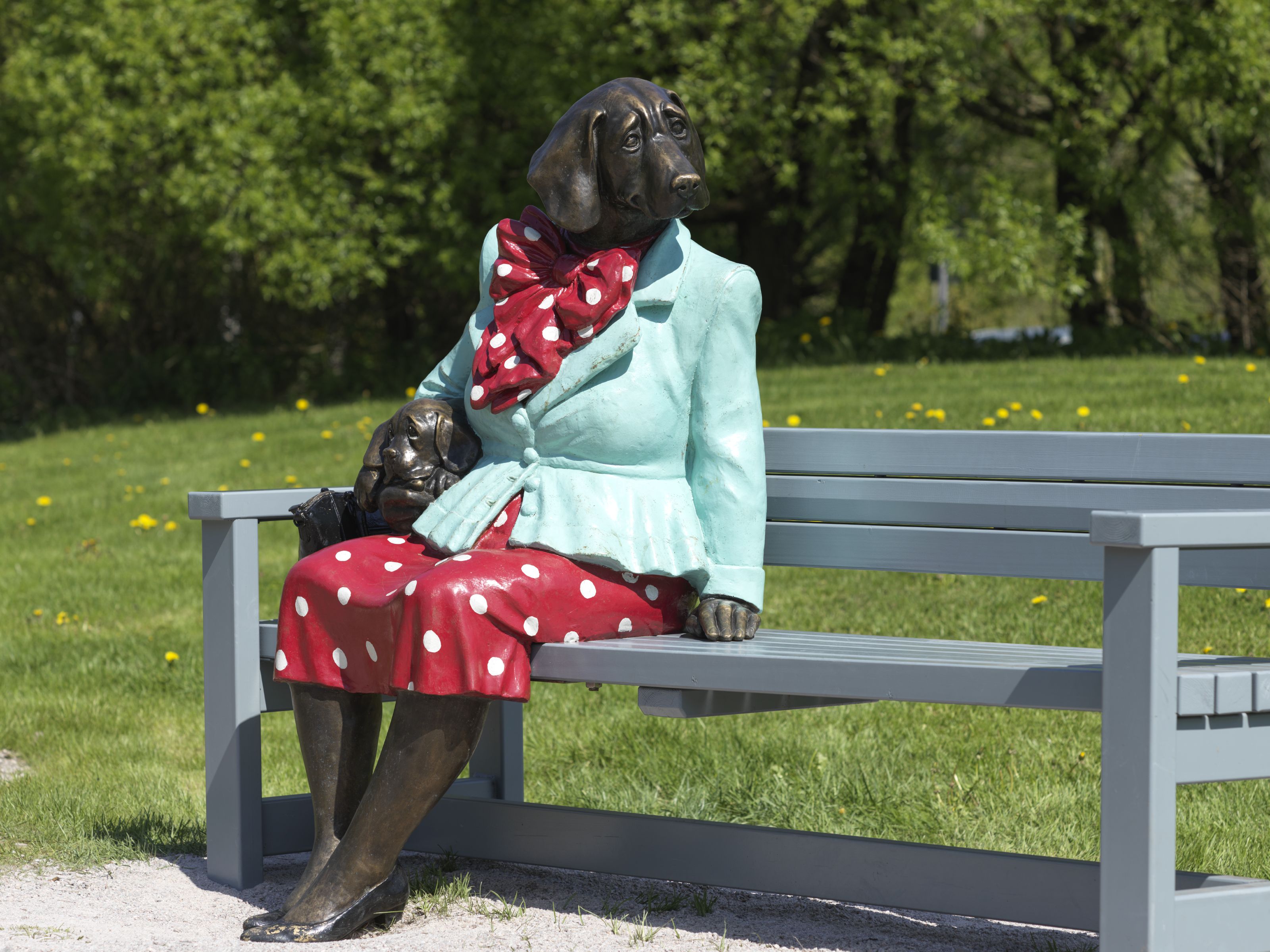 Espoo’s Nelli is a motherly, warm-hearted canine-human hybrid who holds a puppy under one arm. The sculpture is part of Animal Humans and Human Animals, Kerttu Horila’s imaginative series of storybook fusions of humans and animals.