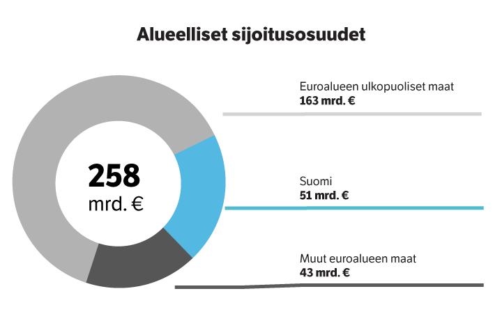 Varojen omaisuuslajikohtainen tai maantieteellinen jakautuminen ei juuri muuttunut vuosineljänneksen aikana.