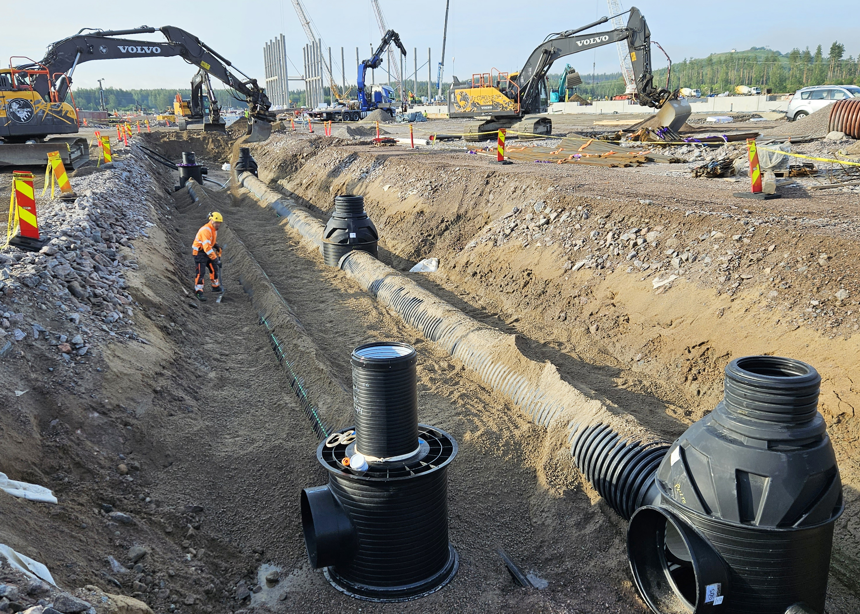 Kreatella poikkeuksellisen iso putkiurakka – Keskon logistiikkakeskuksen sähkö ja hulevedet kulkevat lähes 70 kilometrin putkistossa