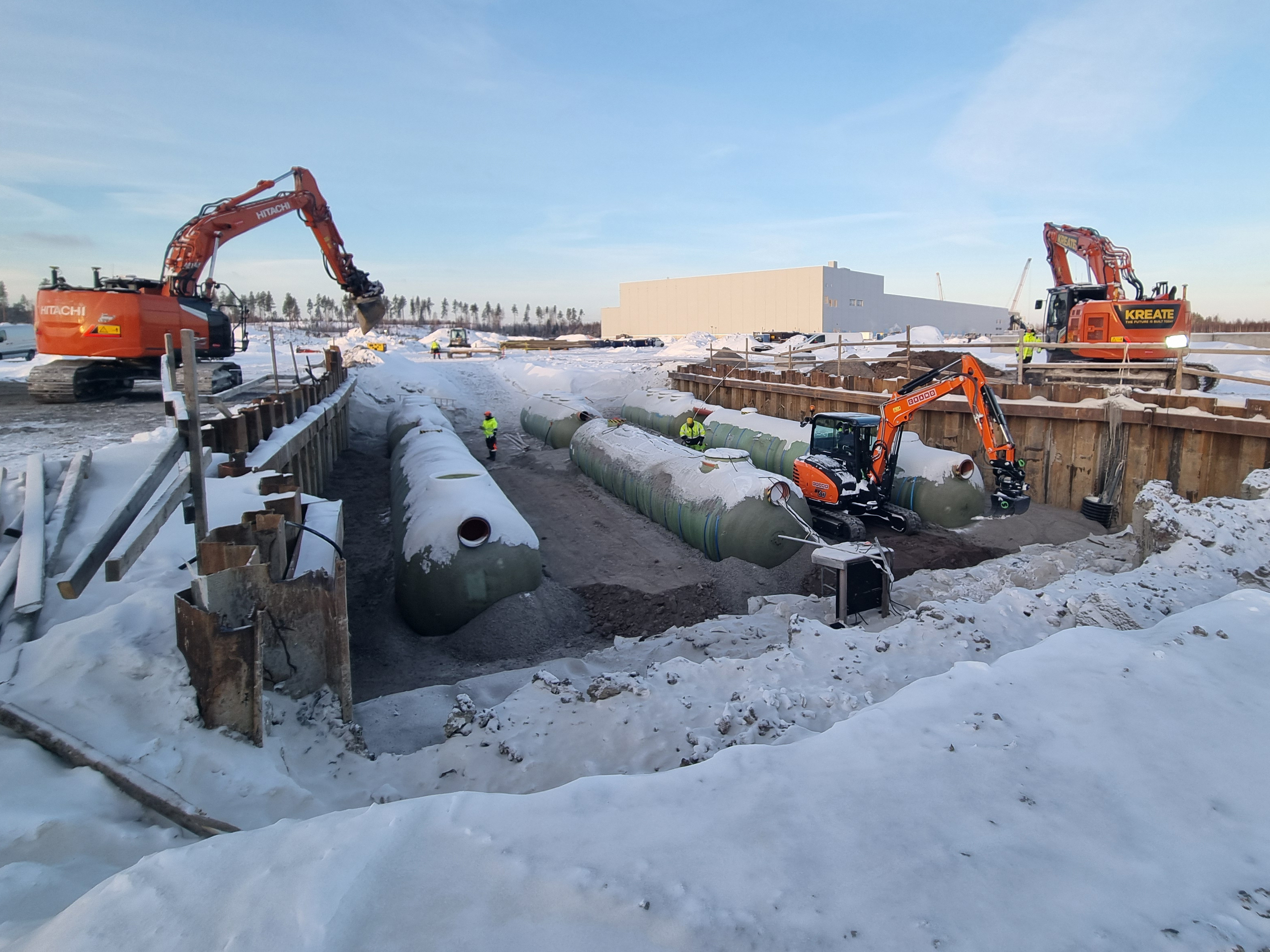 Suomen suurimpiin rakennushankkeisiin kuuluvalla Keskon logistiikkakeskuksen työmaalla myös putkityöt ovat omaa luokkaansa niin laajuudeltaan kuin kestoltaan. Kreate urakoi 1,5 vuoden aikana lähes 70 kilometriä kaapelinsuoja-, vesi- ja viemäriputkia. Lisäksi asennettiin yli 20 pumppaamoa ja yli 800 kaivoa, joilla varmistetaan Onnelaksi nimetyn Hyvinkään logistiikkakeskuksen hule- ja jätevesien kokonaisvaltainen hallinta.