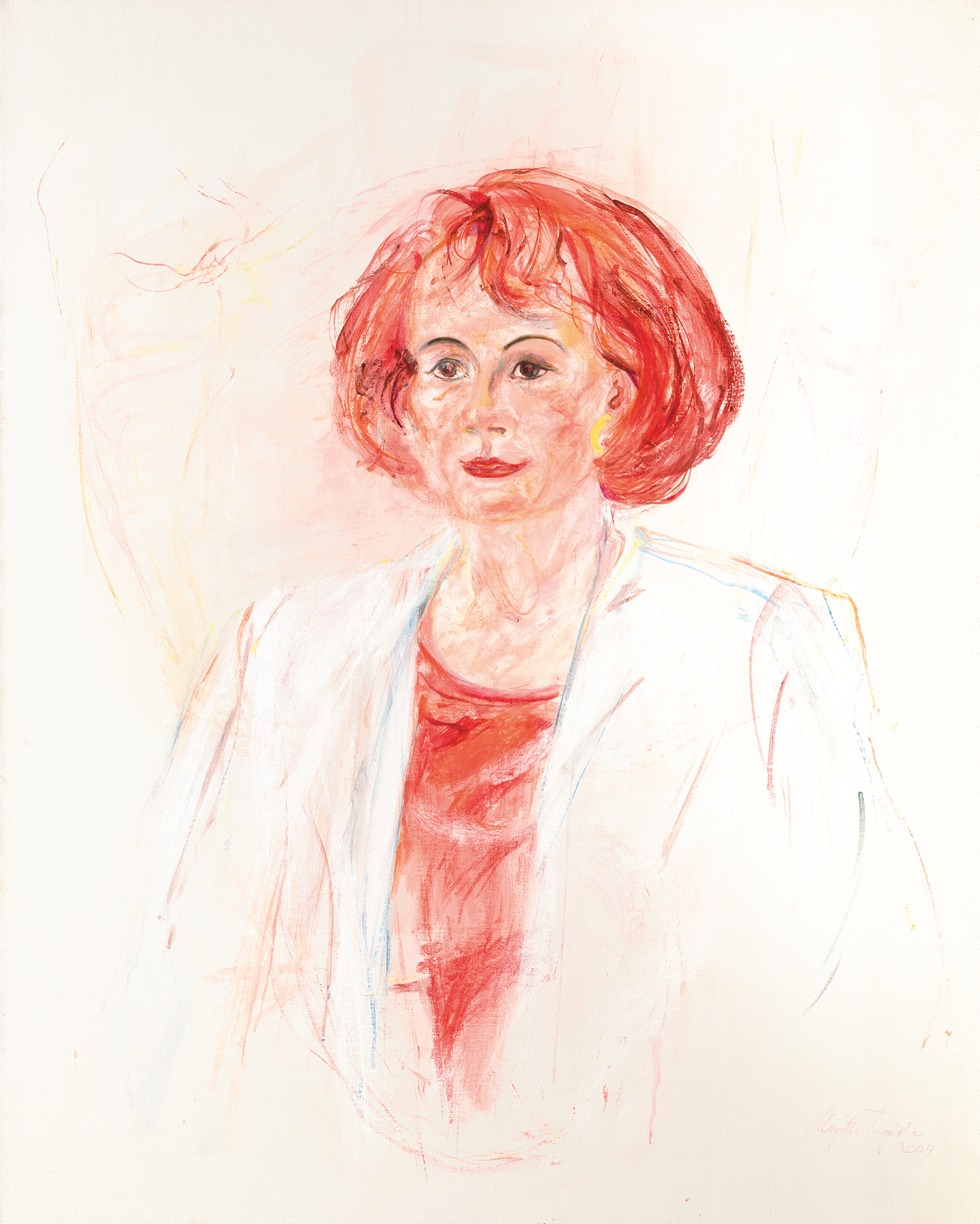 Marjatta Tapiola: ”Sirpa Asko-Seljavaara”, 2004, öljy kankaalle, 110 × 90 cm, HUSin taidekokoelma, Töölön sairaala