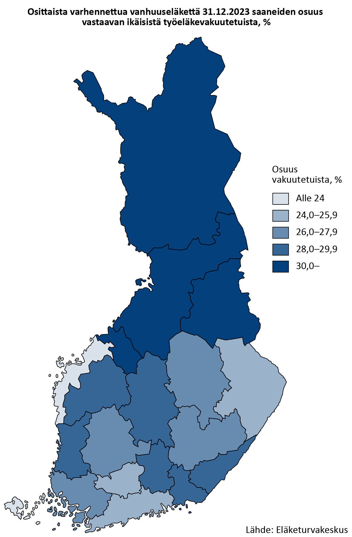Osittaisen vanhuuseläkkeen suosio vaihtelee merkittävästi eri puolilla Suomea, kertovat Eläketurvakeskuksen (ETK) uudet tilastot. Kun keskimäärin joka neljäs 61–68-vuotias eläkkeeseen oikeutettu nostaa osittaista vanhuuseläkettä, Lapissa eläkettä nostaa joka kolmas. Vastaavasti ahvenanmaalaisista vajaa viidennes on valinnut osittaisen vanhuuseläkkeen.