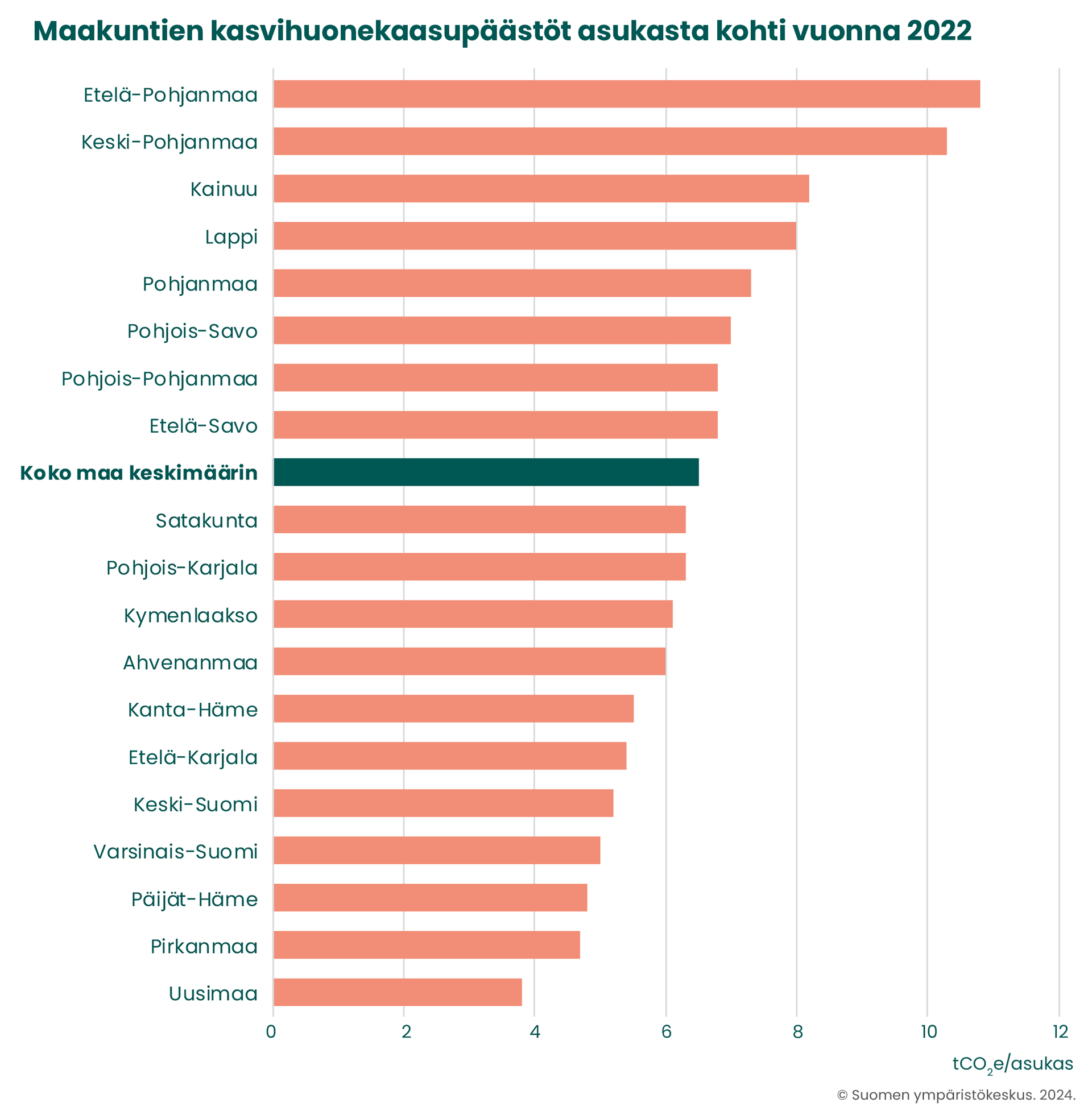 Asukaskohtaisissa päästöissä eroja maakuntien välillä