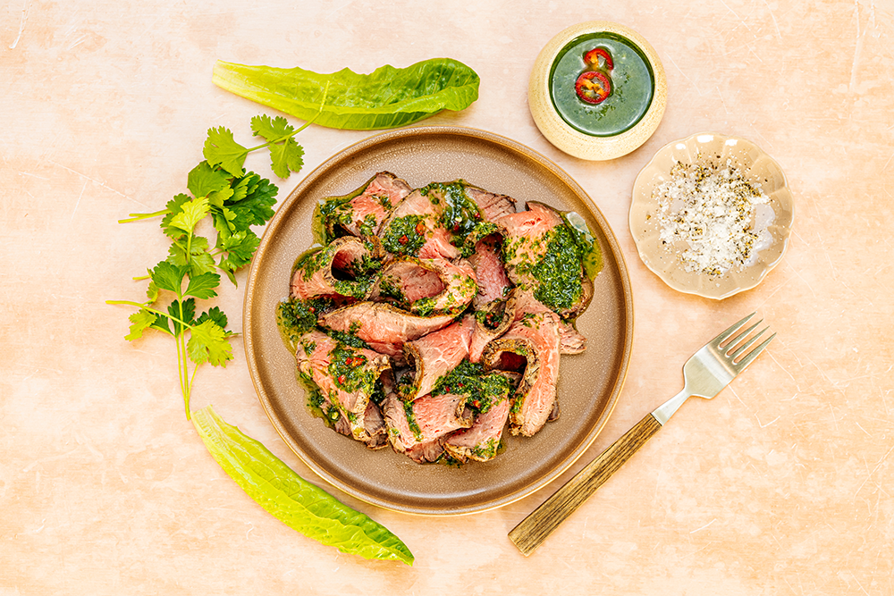 Grillattu naudan ulkofilee ja chimichurri-kastiketta: https://www.mtk.fi/-/naudan-ulkofilee