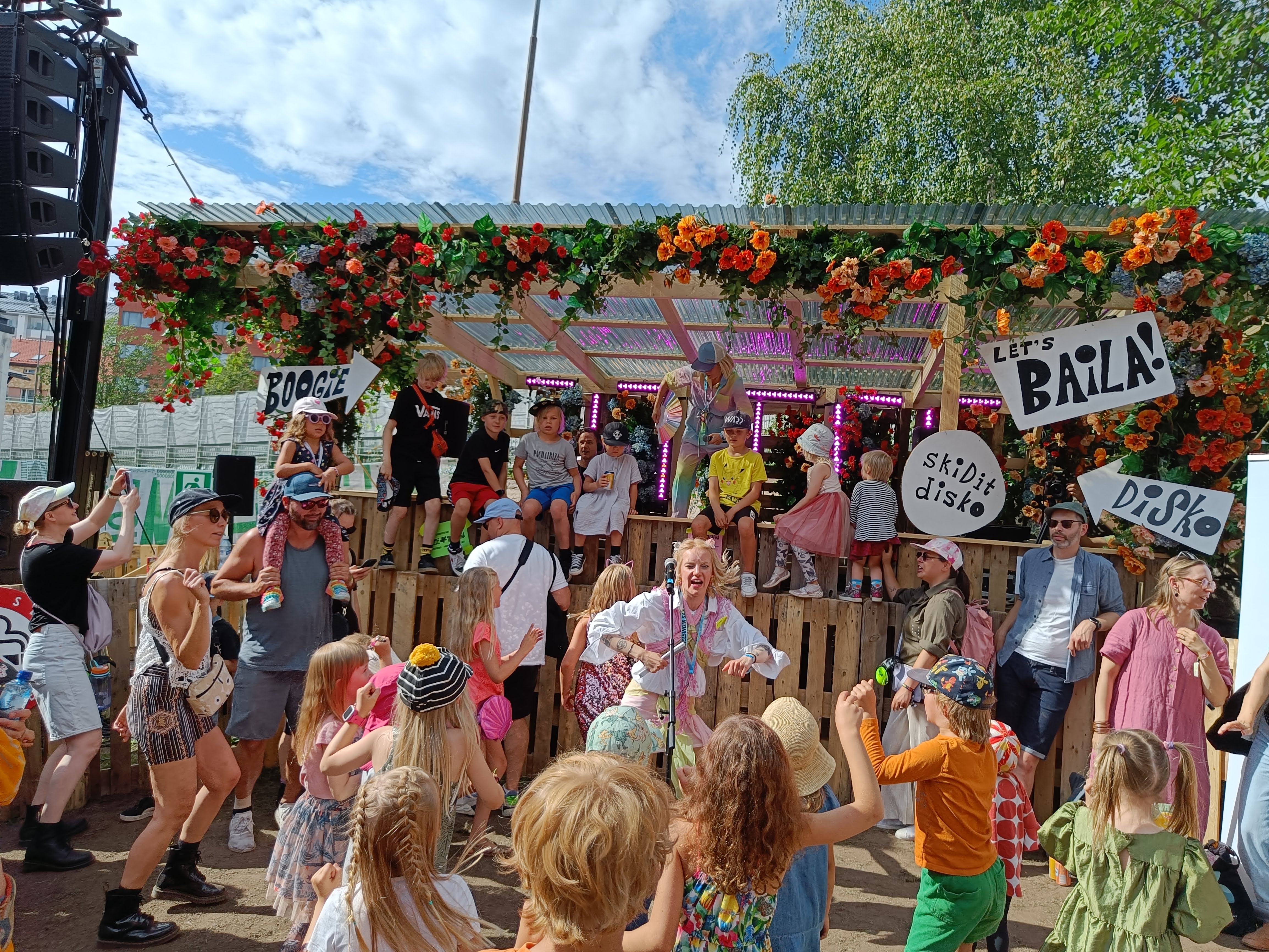 klo 11–14 Skidit parkkeeraavat soivan diskomobiilinsa Hietalahden hallin toriterassille kesän parhaita lasten bileitä varten. Diskoilun lisäksi lapset pääsevät musisoimaan kattilamuskarissa musaope Sanniksen johdolla.