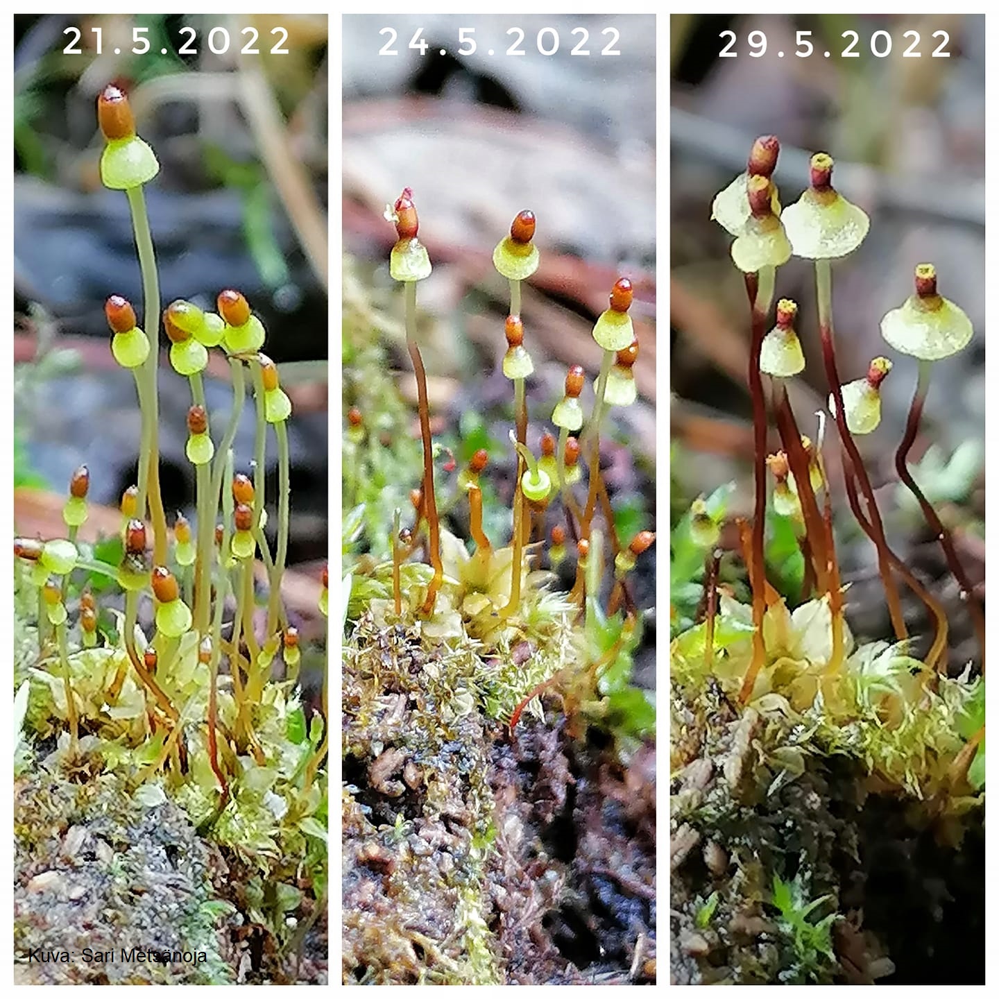 Jos havaitset sompasammalia, ota kuva, jossa näkyy koko itiöpesäke sekä sammalen kasvualustaa. Voit ottaa myös useamman kuvan eri etäisyyksillä versoista tai lähikuvia sammalen lehdistä.