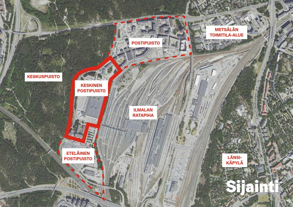 Kaavoitettava alue sijoittuu rakenteilla olevan Postipuiston sekä jo kaavoitetun Eteläisen Postipuiston väliin. Tulevaisuudessa nämä kolme aluetta muodostavat yhtenäisen kaupunginosan Pasilan pohjoisosaan.